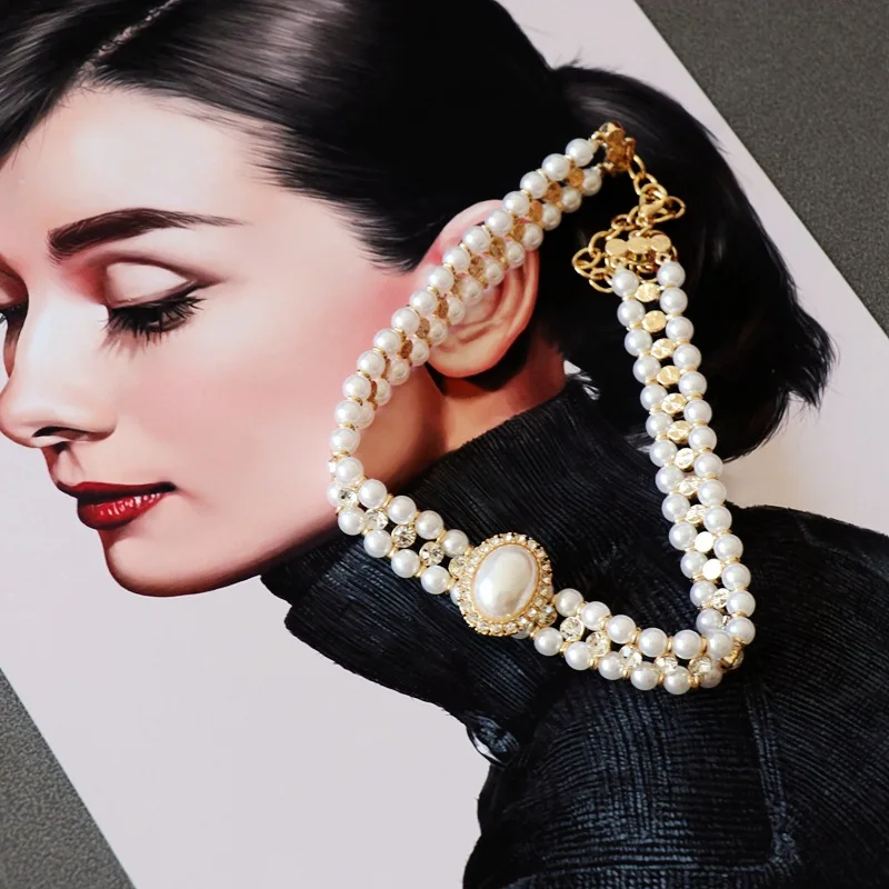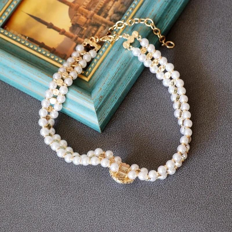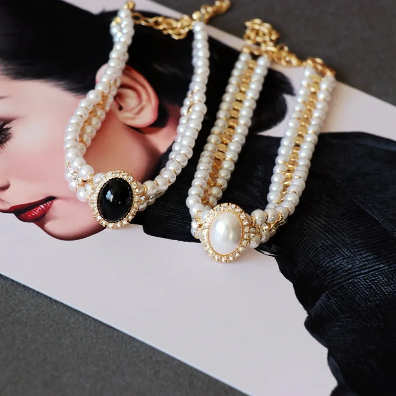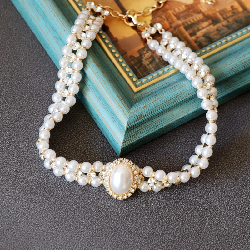 Double-layered Necklaces for Women Simulated Pear Crystal Lneck Chain Female Jewelry Gift Choker Vintage