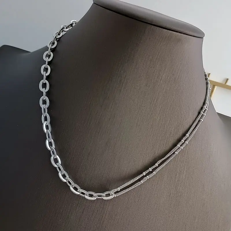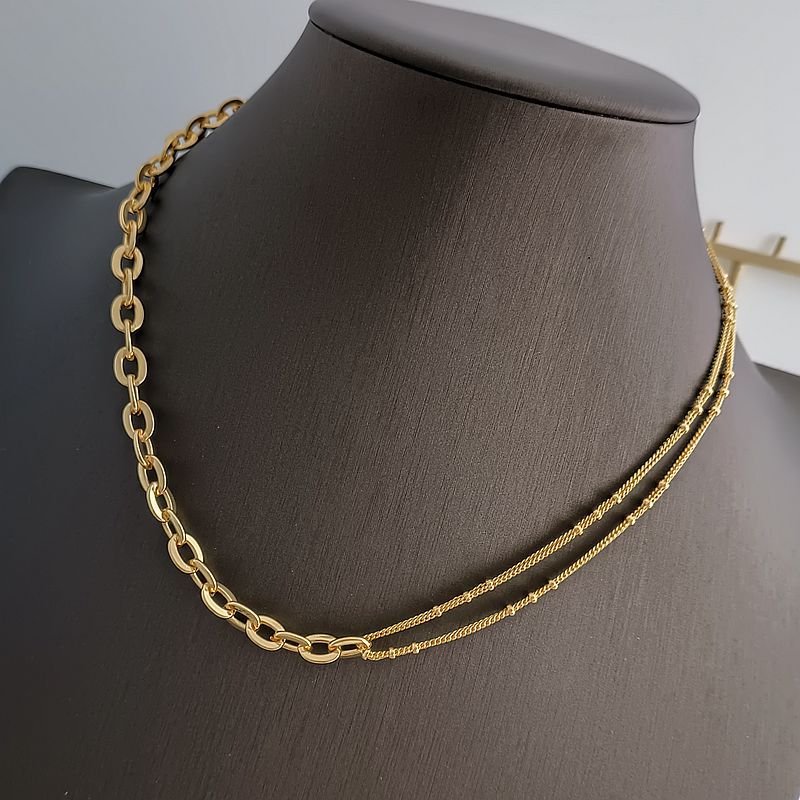 Double layering necklace gold plated sparkle necklace chain choker for women