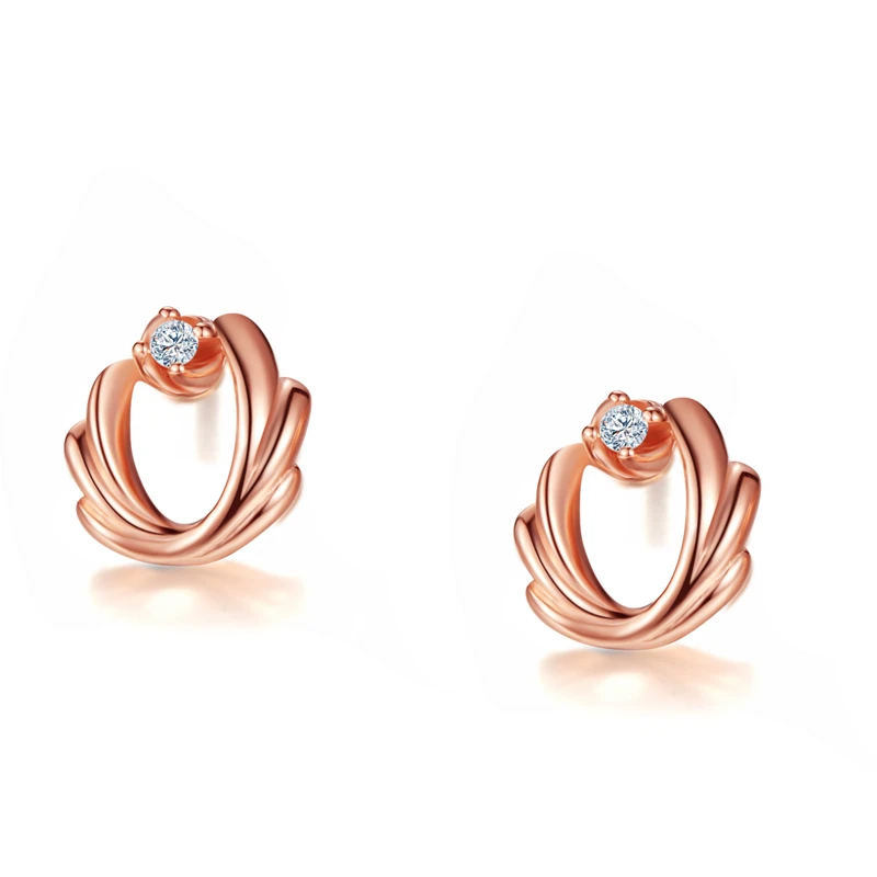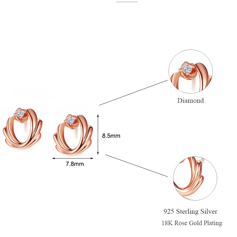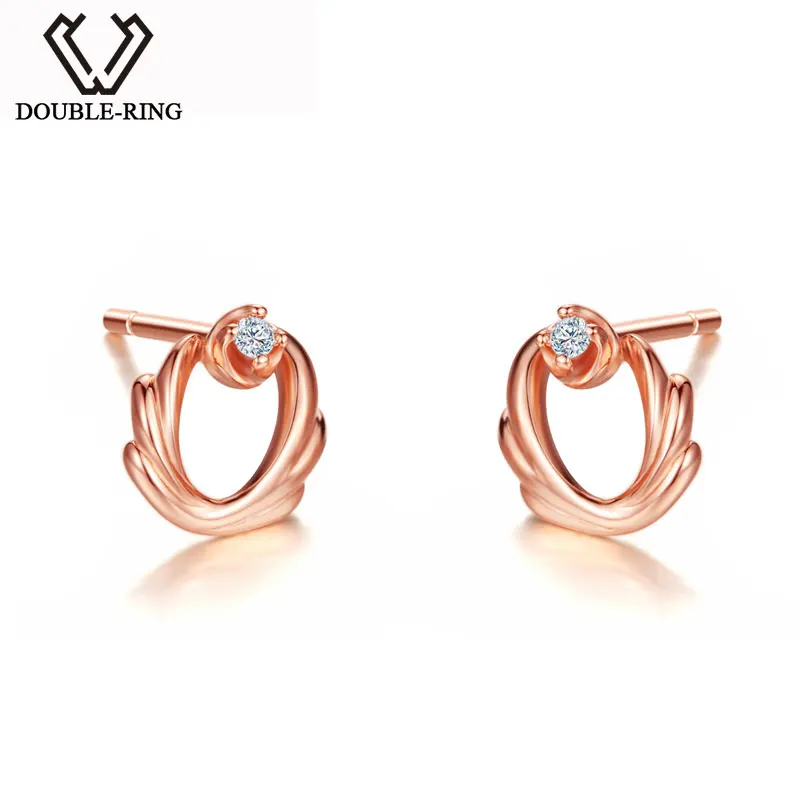 DOUBLE-R 0.03ct Diamond Stud Earrings Female 925 Sterling Silver Outside Rose Gold Earring Romantic Wedding Gift Diamond Jewelry