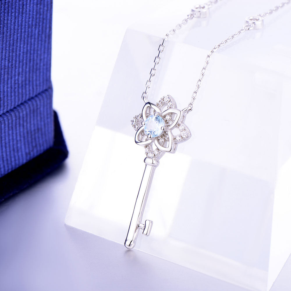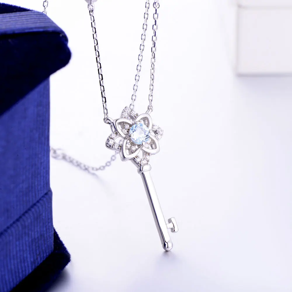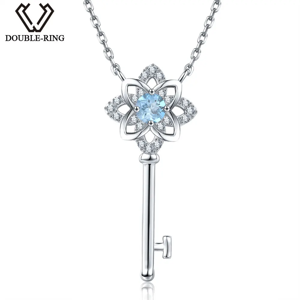 DOUBLE-R 0.3ct Blue Topaz Classic Necklaces & Pendants 100% Genuine 925 Sterling Silver Trendy Necklace Fine Jewelry For Women