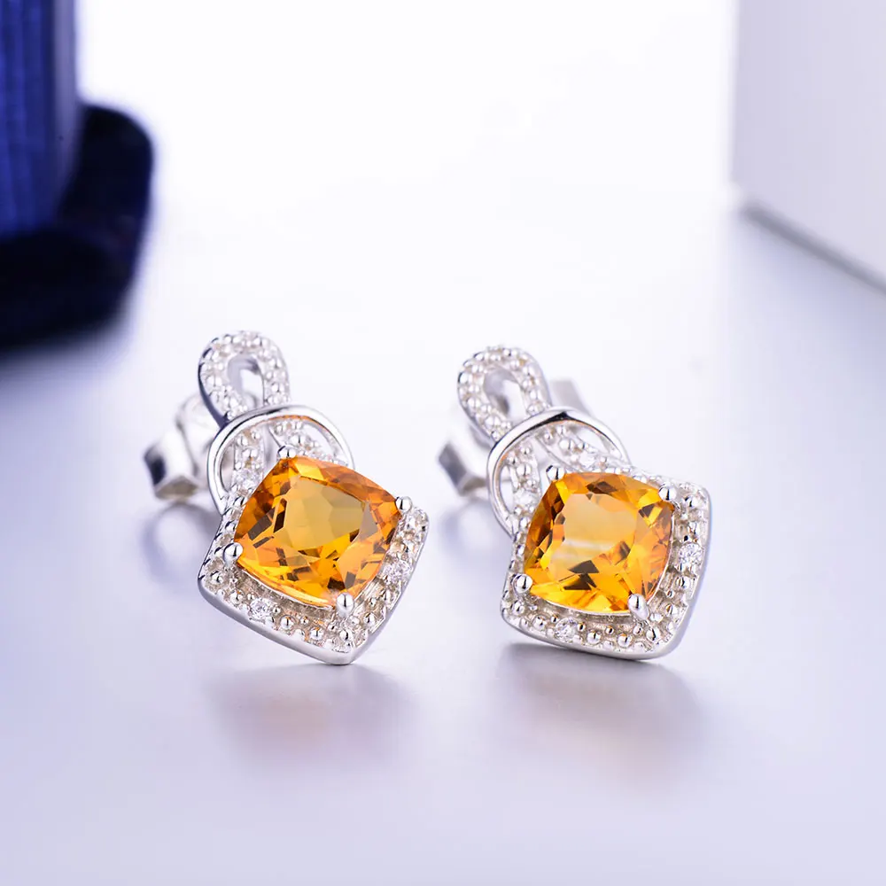 DOUBLE-R 1.7ct Yellow Genuine Natural Citrine Drop Earrings Real 925 Sterling Silver Fine Dangle Earrings Jewelry For Women