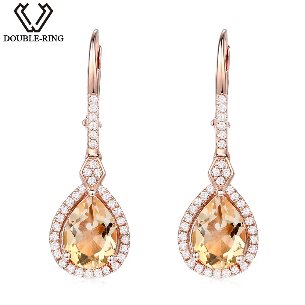 DOUBLE-R 4.35ct Genuine Natural Citrine Silver 925 Drop Earrings vintage Gemstone earrings For Women fine Wedding Jewelry