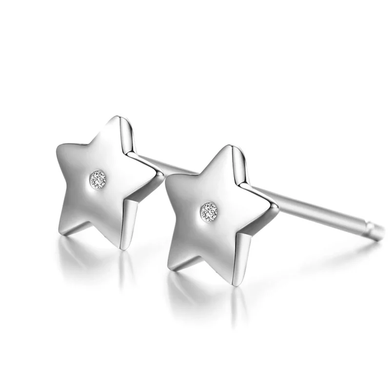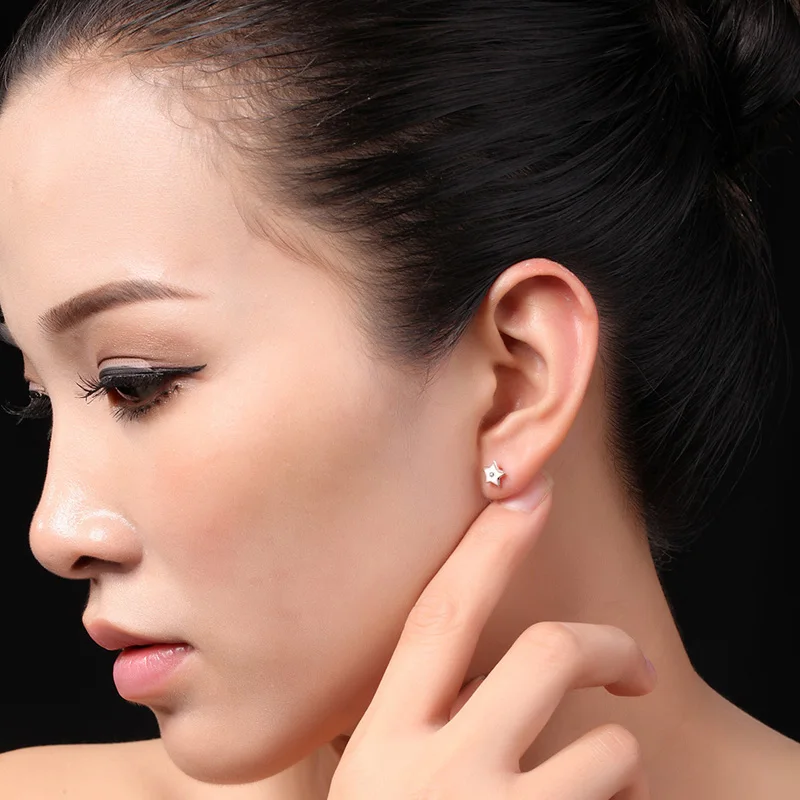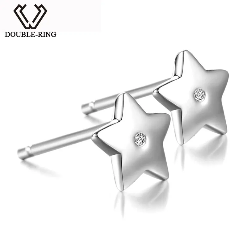 DOUBLE-R 925 Sterling Silver Earrings Women Diamond Star Stud Earrings Trendy Christmas Gift Brand Jewelry New CASE04658SA-1