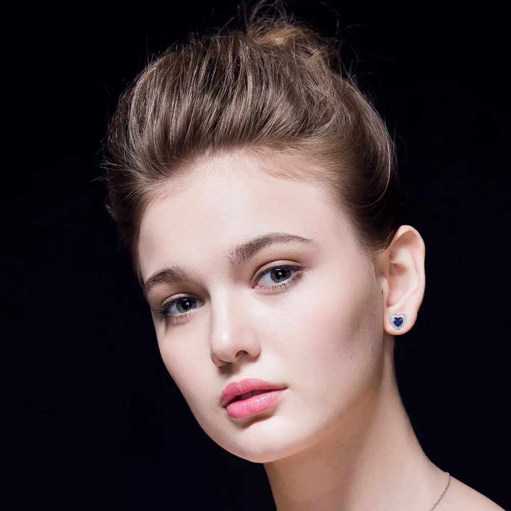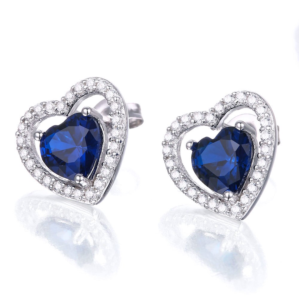 DOUBLE-R 925 Sterling Silver Earrings For Girl Heart Earrings Created Sapphire Gemstone Jewelry Stud Earring