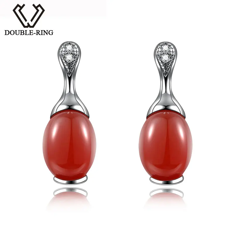 DOUBLE-R Natural Red Agate Gemstone 925 Sterling Silver Dangle Drop Earrings Women Earrings Fine Jewelry Female Gift