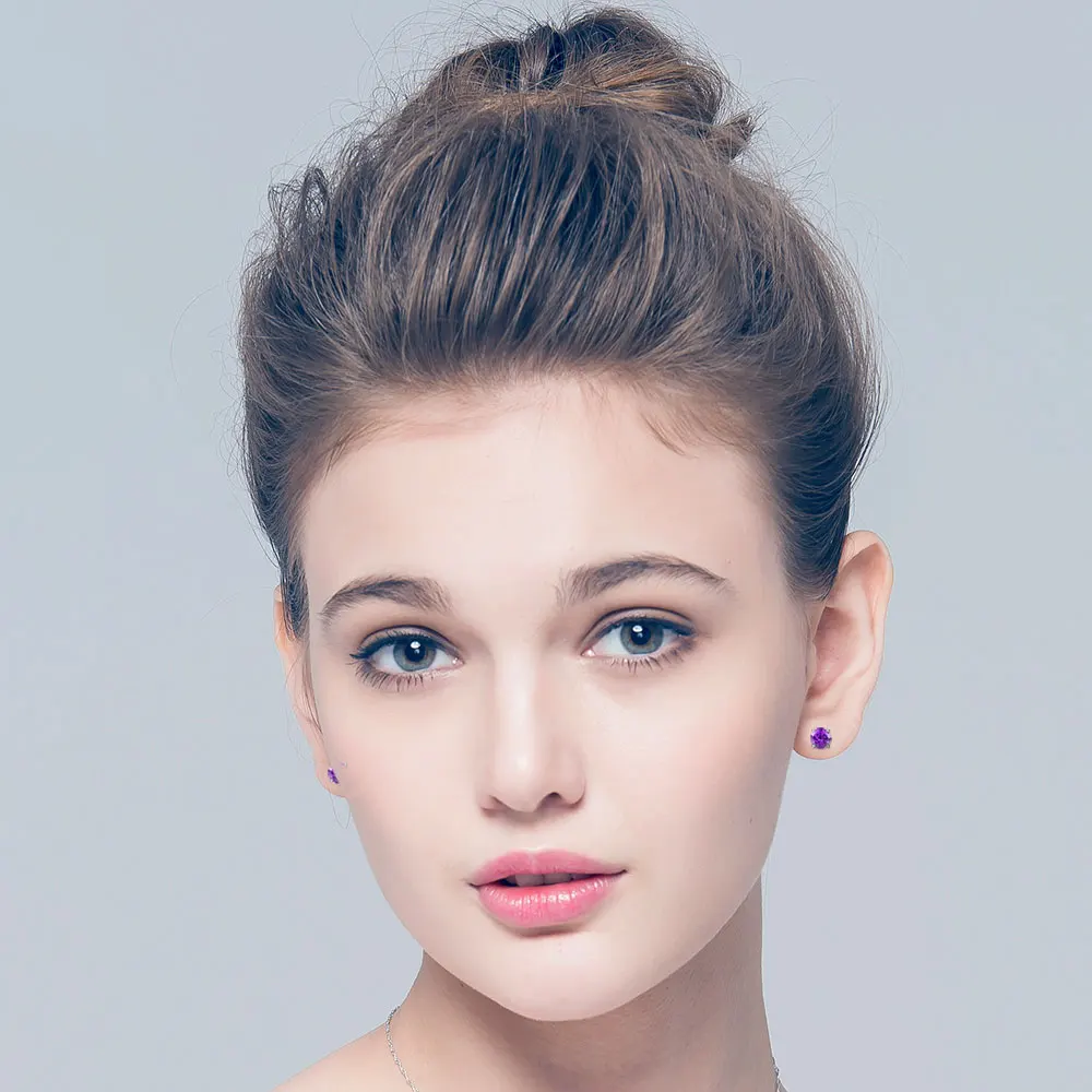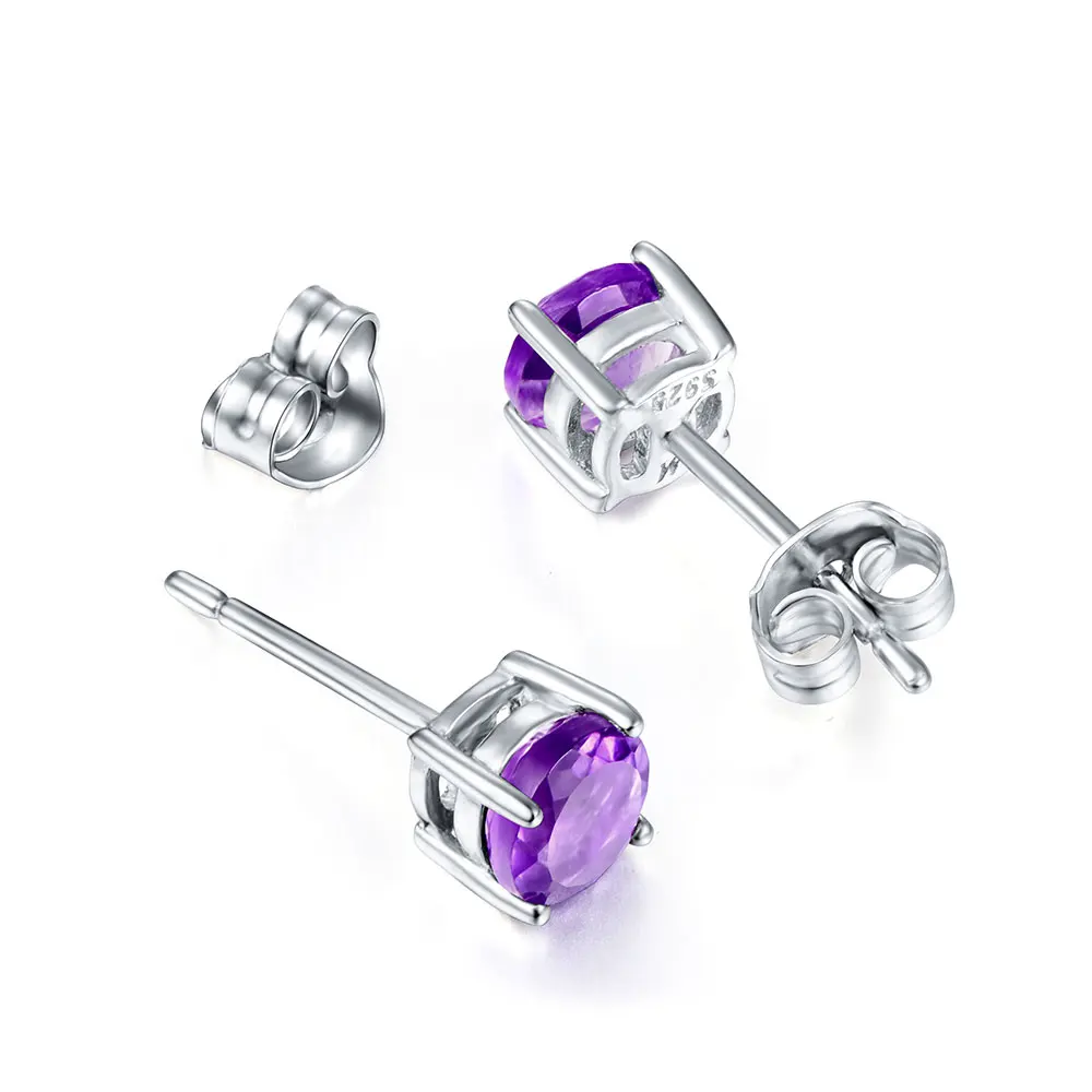 DOUBLE-R Amethyst Stud Earrings 925 Sterling Silver Natural Gemstone Genuine Wedding Fashion Fine Jewelry for Women