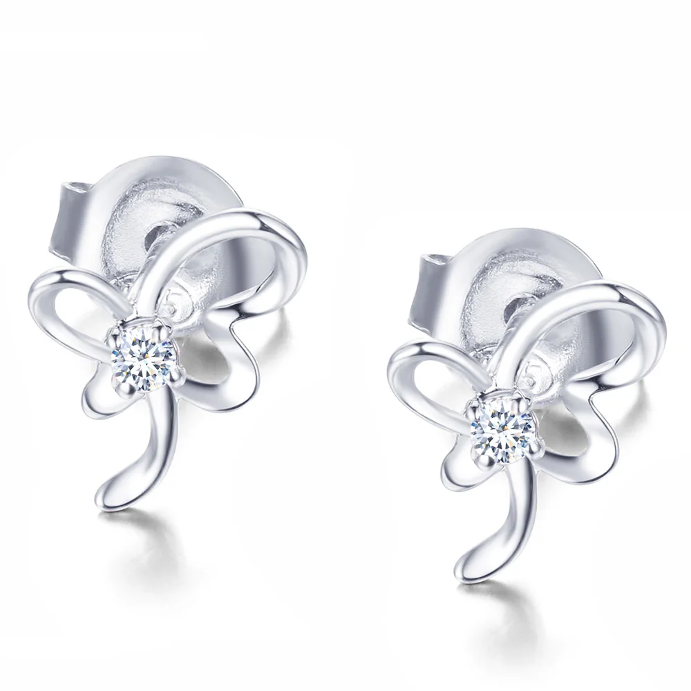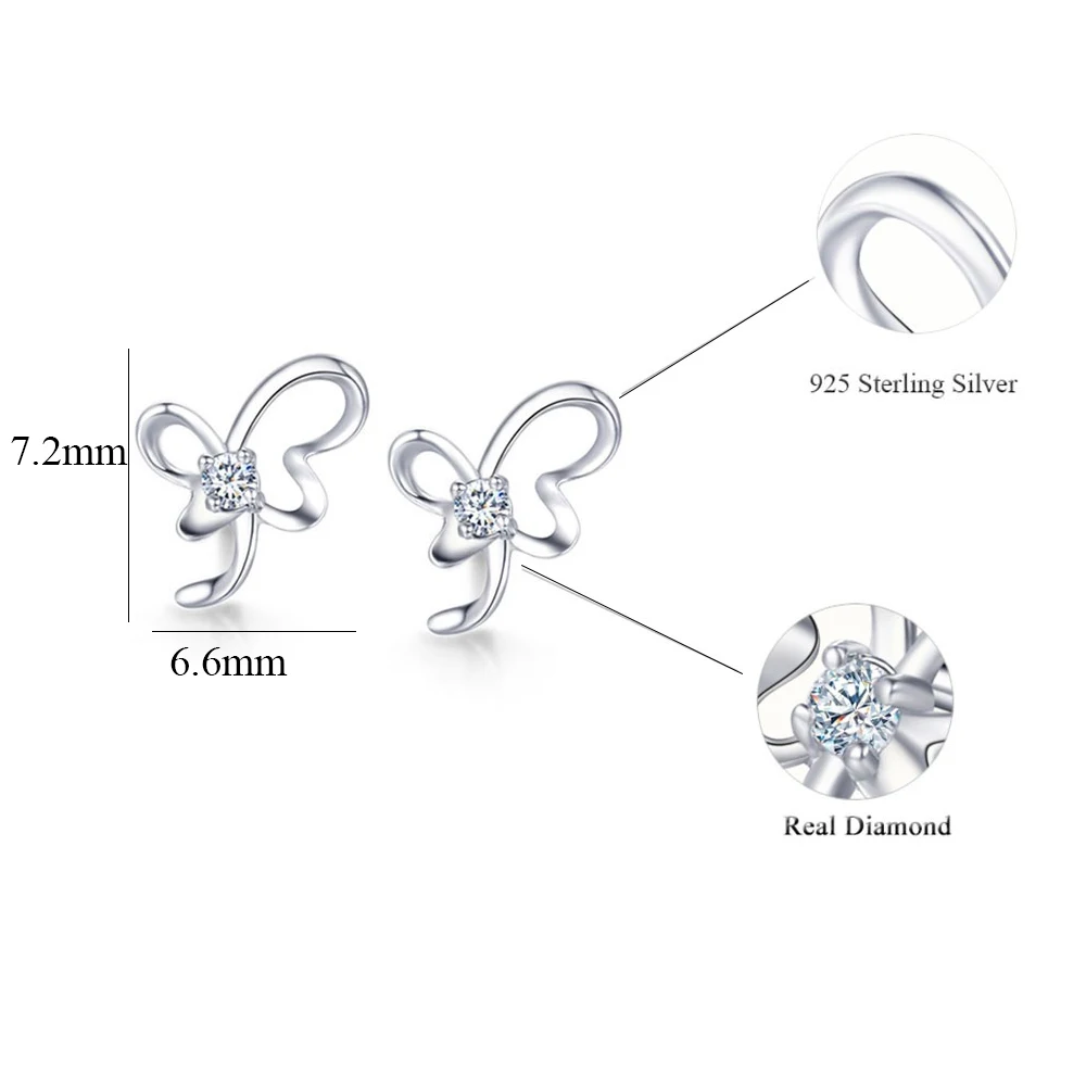 DOUBLE-R Real Diamond Earrings 0.04ct Women Butterfly 925 Sterling Silver Stud Earrings Valentine'S D Gift Diamond Jewelry