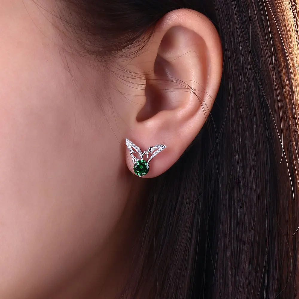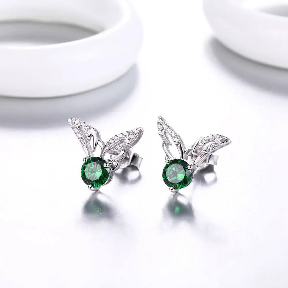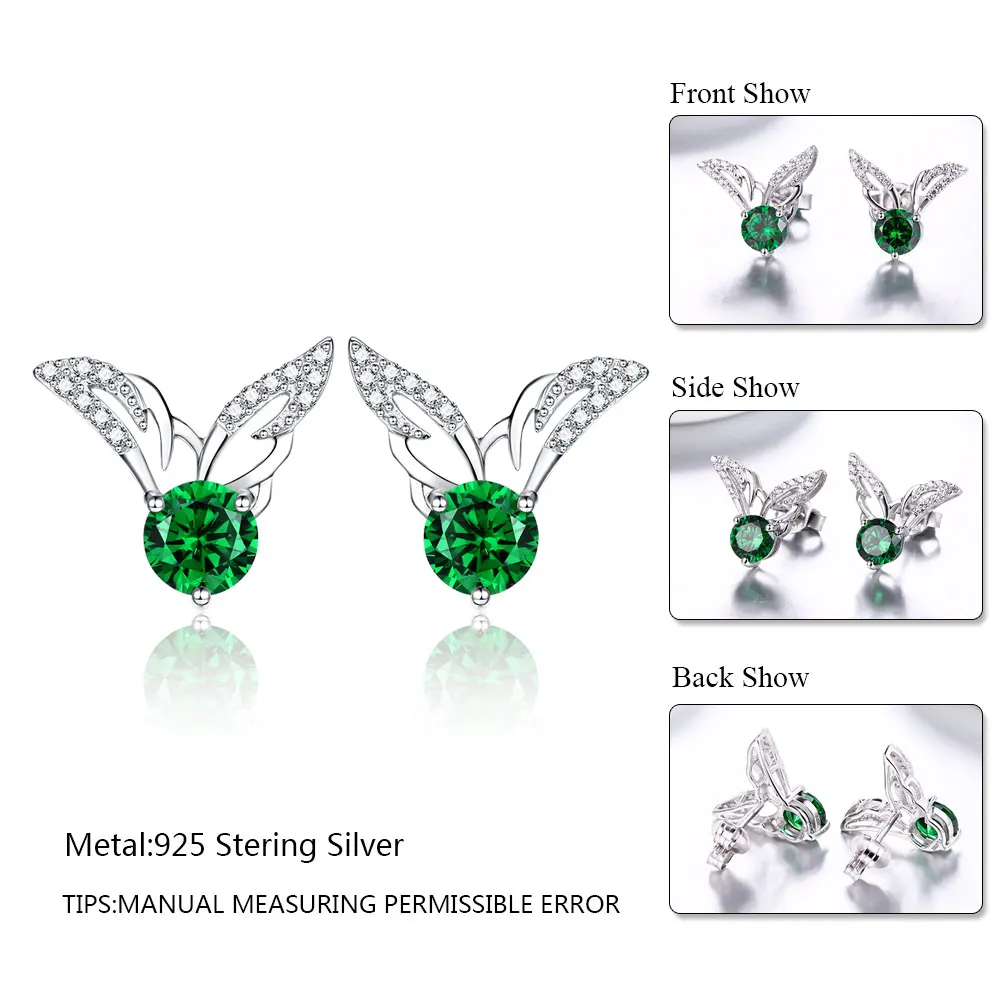 DOUBLE-R Earrings For Women Real 925 Sterling Silver Earring With Created Emerald Gemstone Fine Jewelry