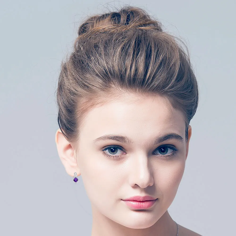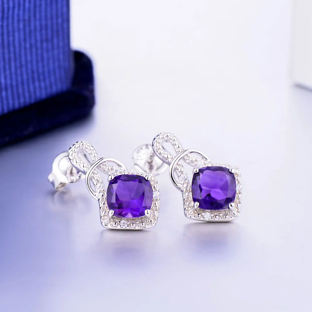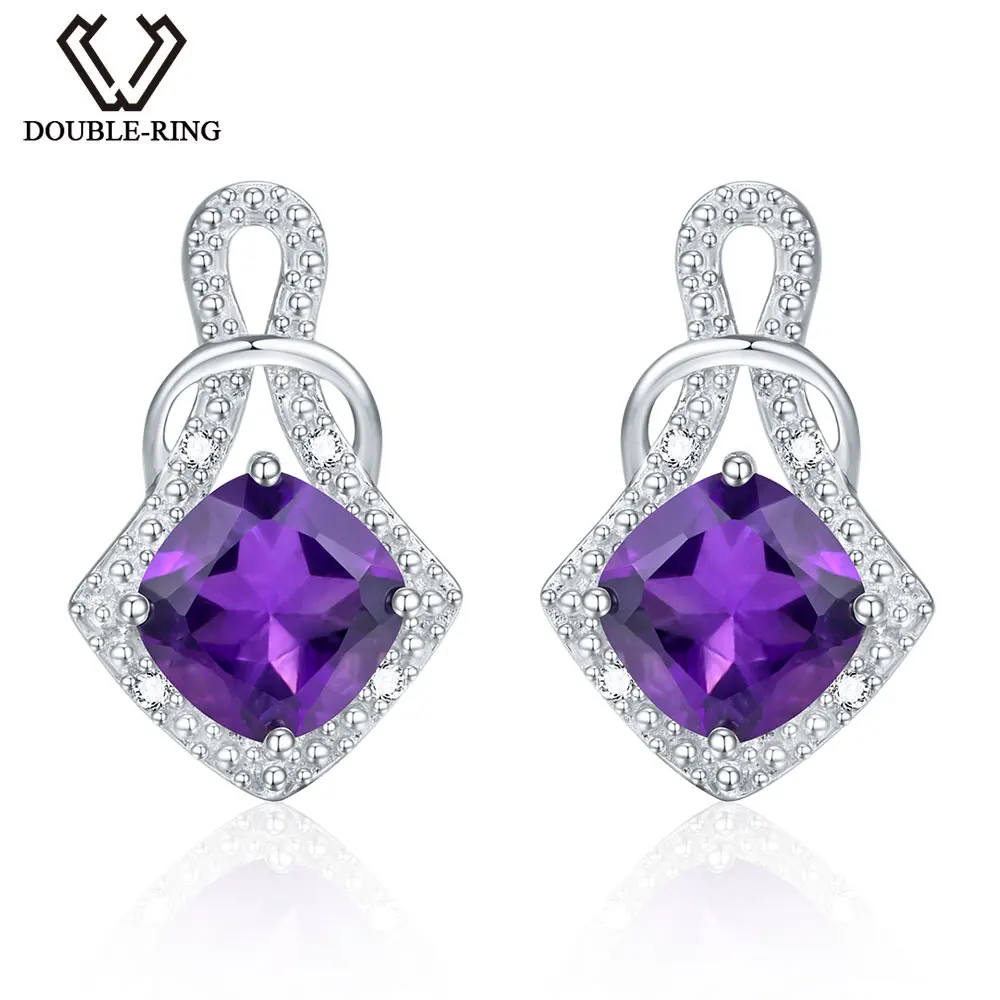 DOUBLE-R 1.65ct Genuine Natural Amethyst 925 Sterling Silver Earrings Gemstone Earrings For Women Blue Earrings