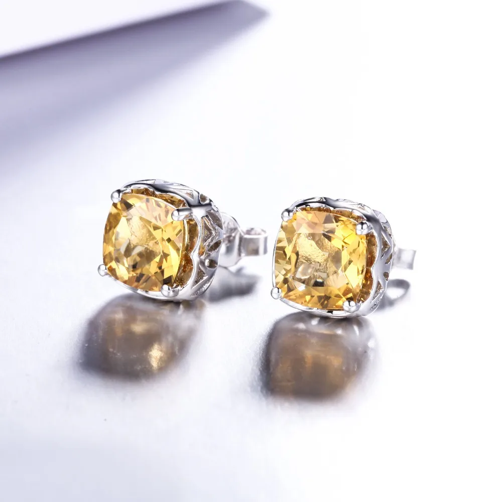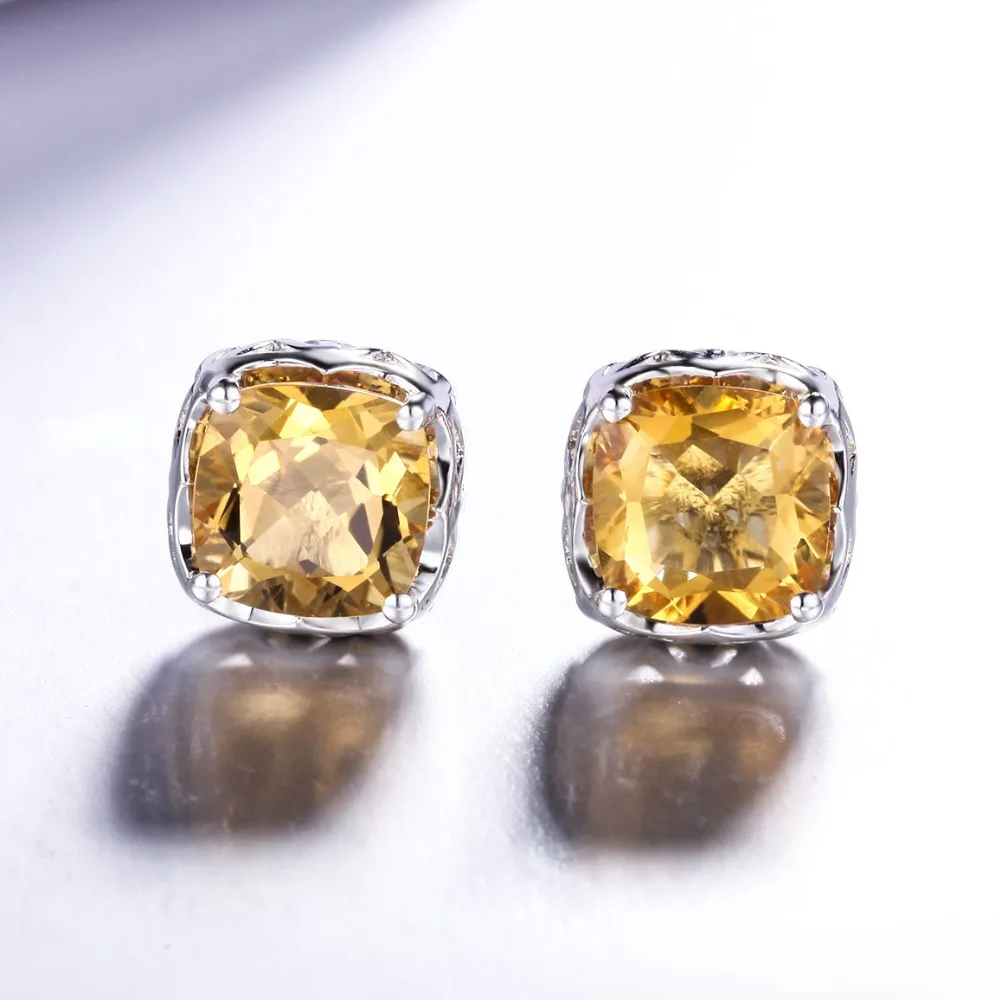 DOUBLE-R Genuine Natural Yellow Citrine rings Solid Real 100% 925 Sterling Silver Fine wedding Jewelry rings For Women