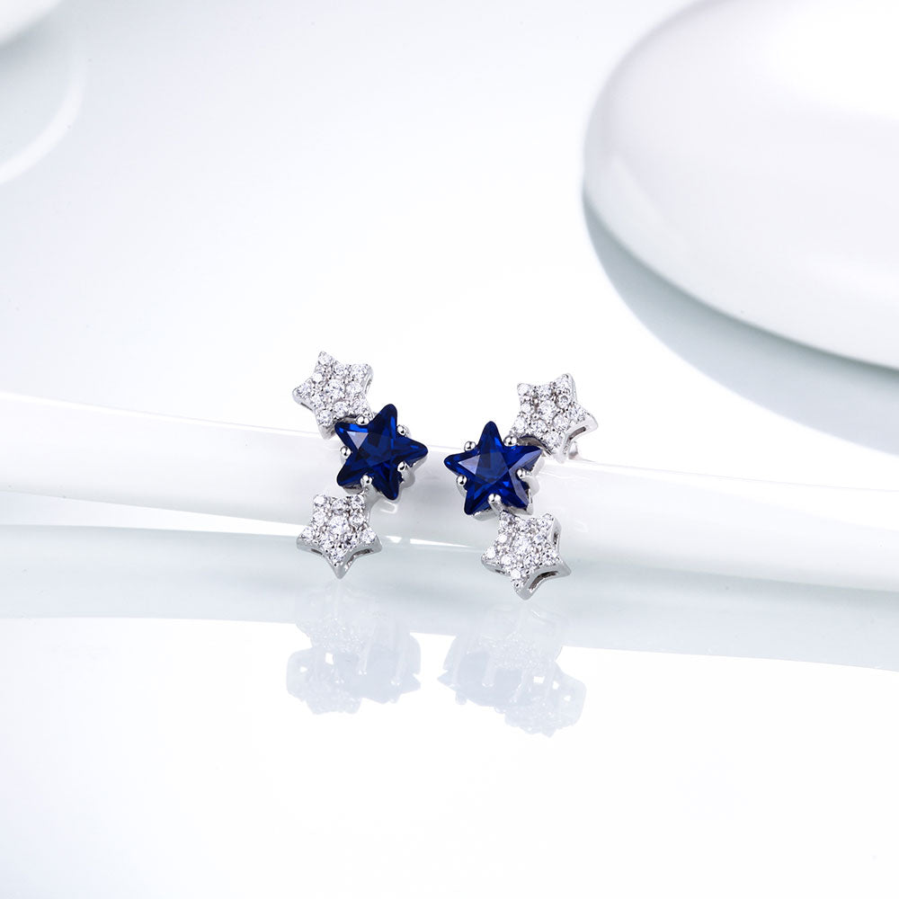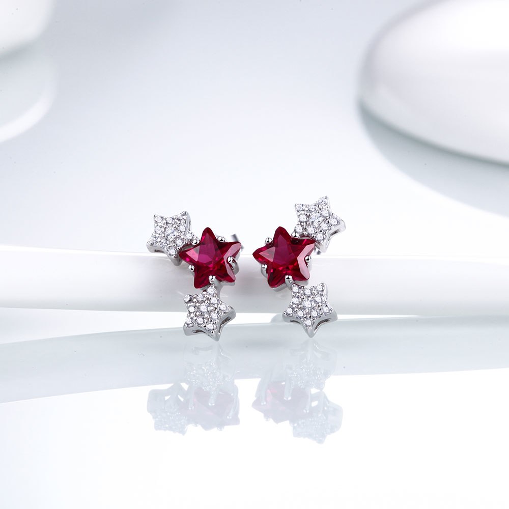 DOUBLE-R Lovely Star Earrings For Girls 925 Sterling Silver Stud Earring With Created Ruby Rose Gemstone Jewelry