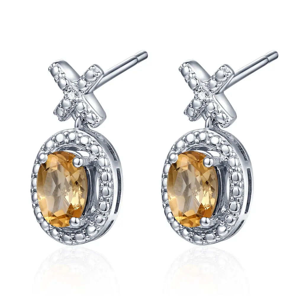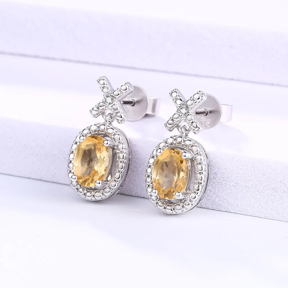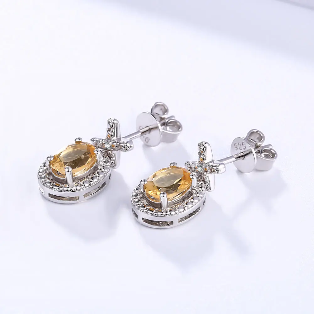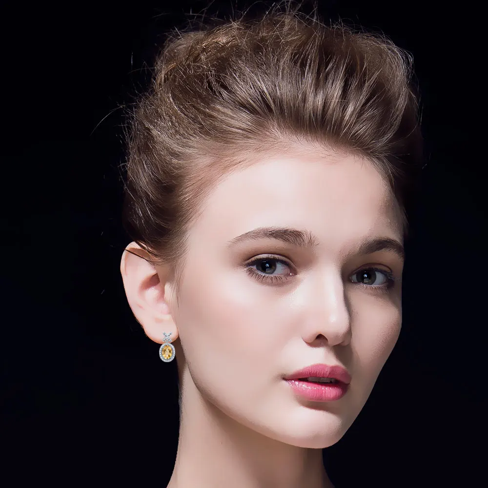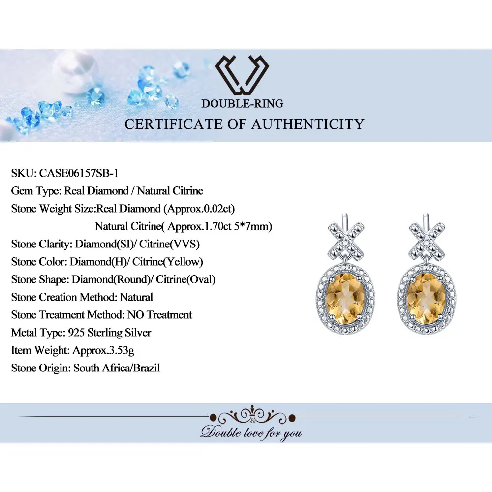 DOUBLE-R Genuine Diamond 1.7ct Natural Citrine Gemstone Earing 925 Sterling Silver Earrings For Women Fashion Jewelry