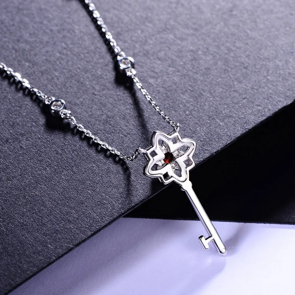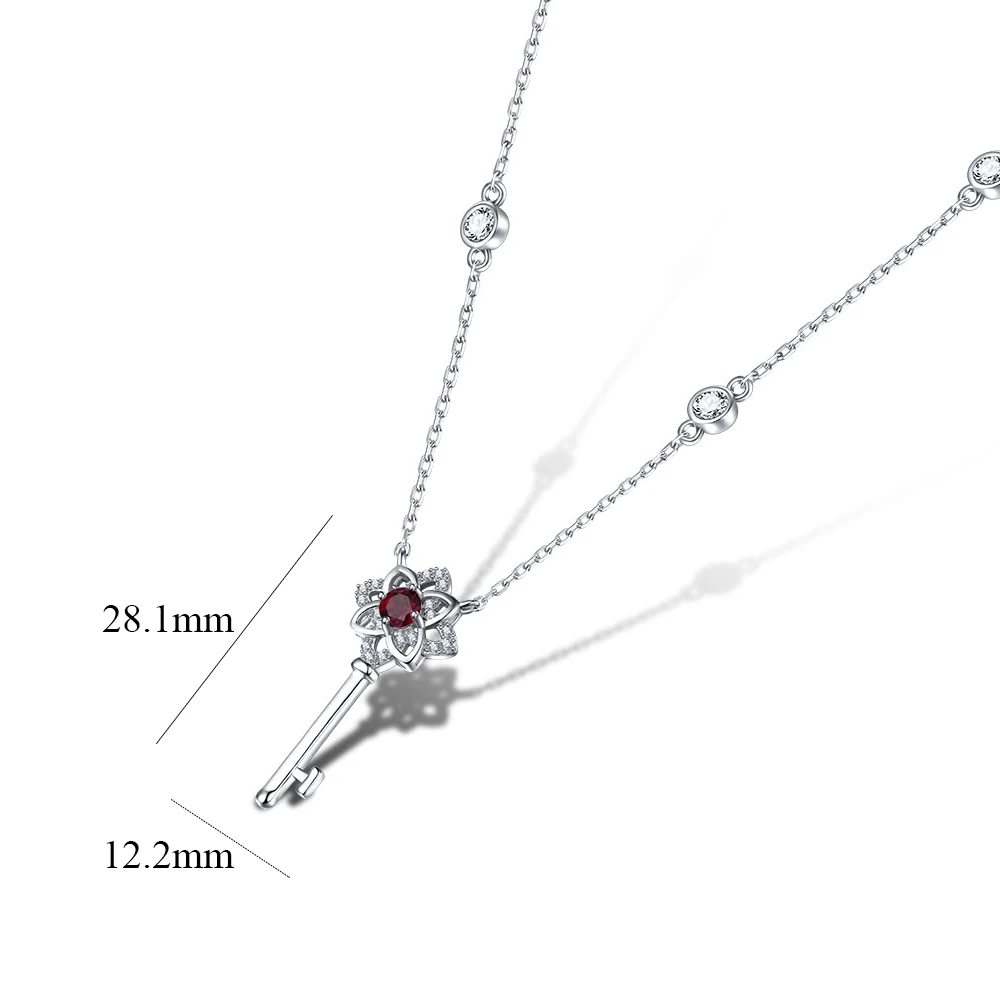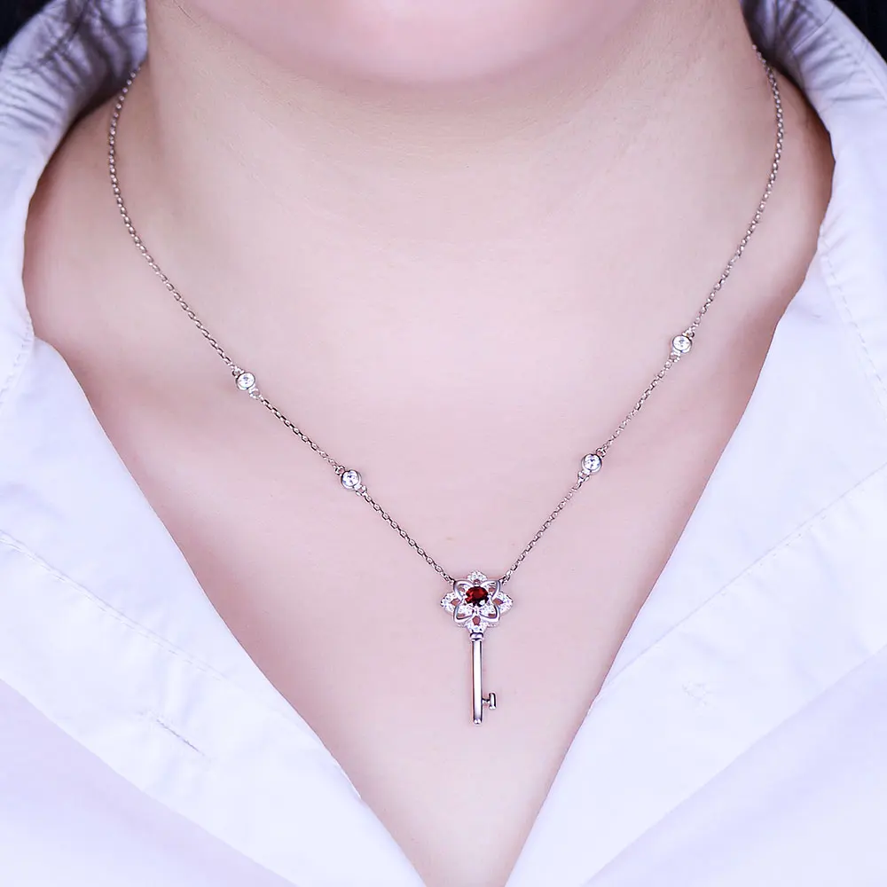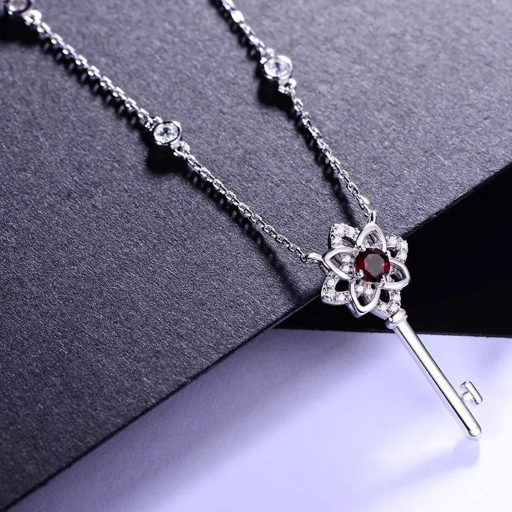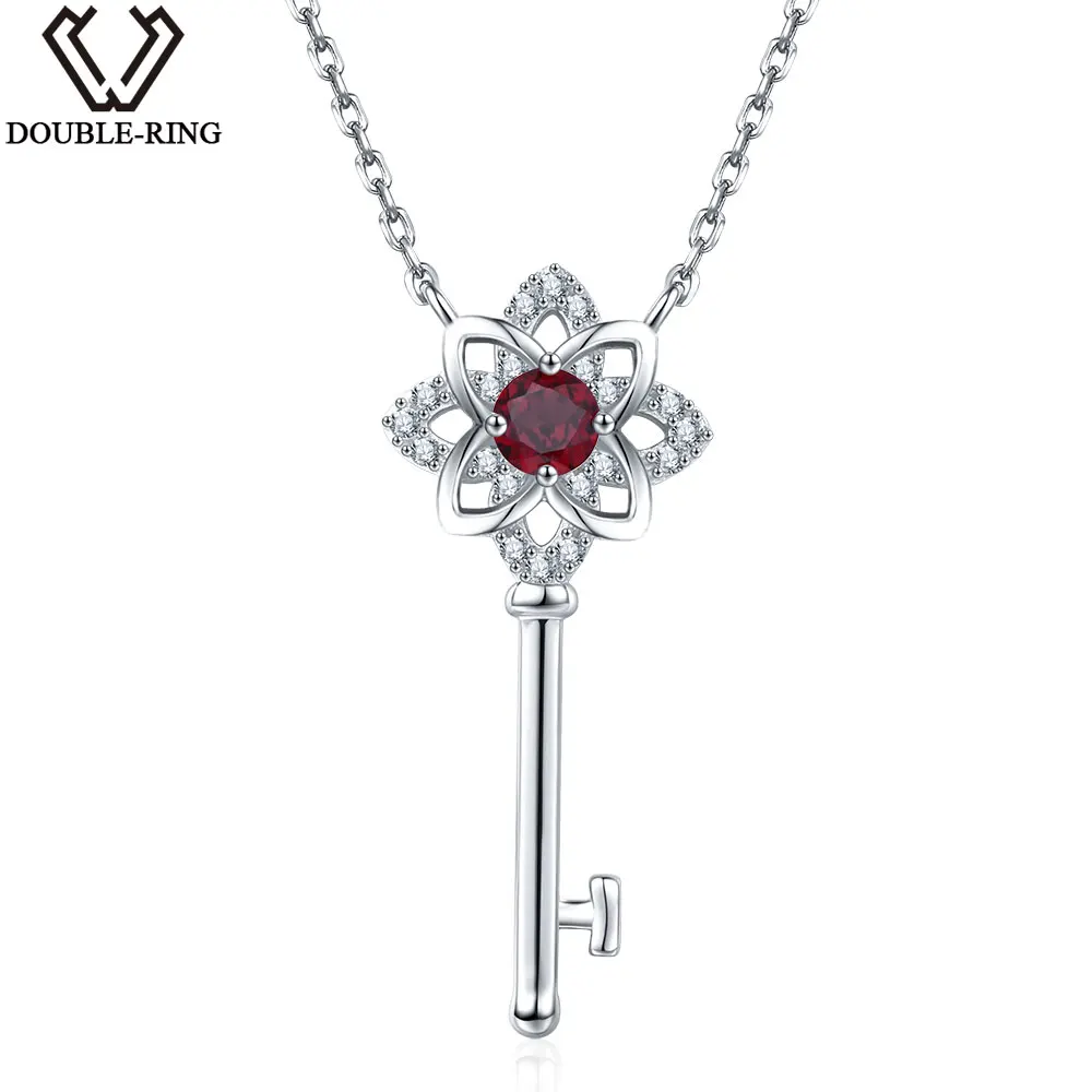DOUBLE-R sterling-silver-jewelry 0.3ct Key Genuine Red Garnet Necklaces & Pendants 925 Sterling Silver Fine Jewelry for women