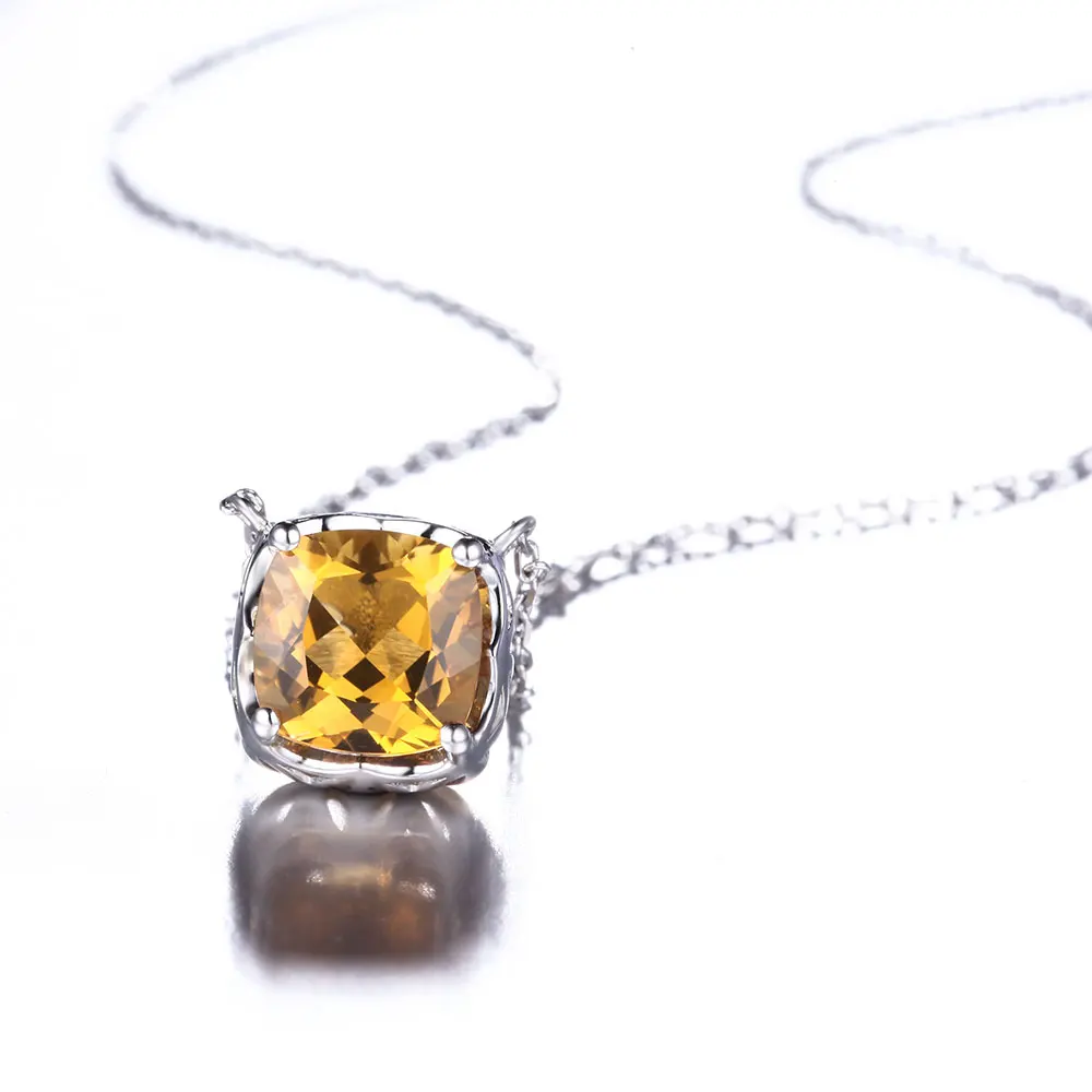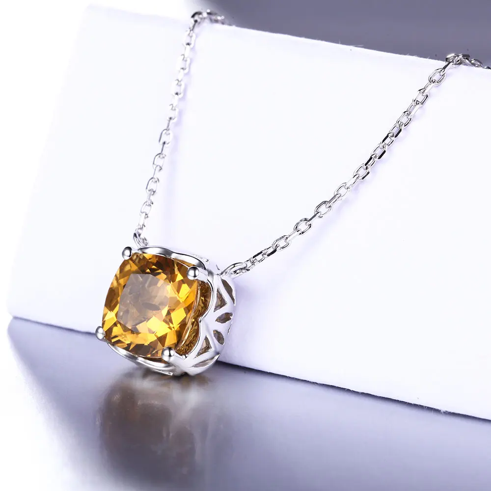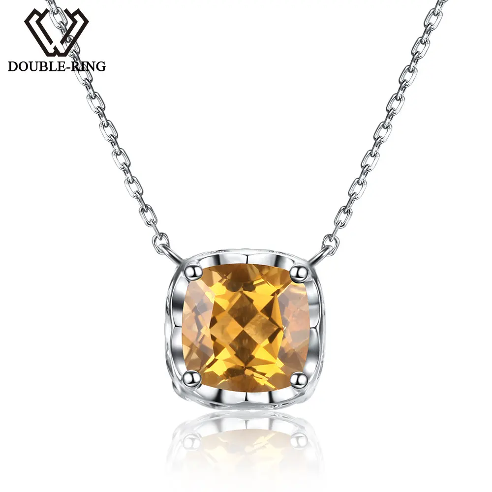 DOUBLE-R Yellow Genuine Natura High Quality Citrine Necklaces 925 Sterling Silver for women Fine Jewelry Necklaces & Pendants