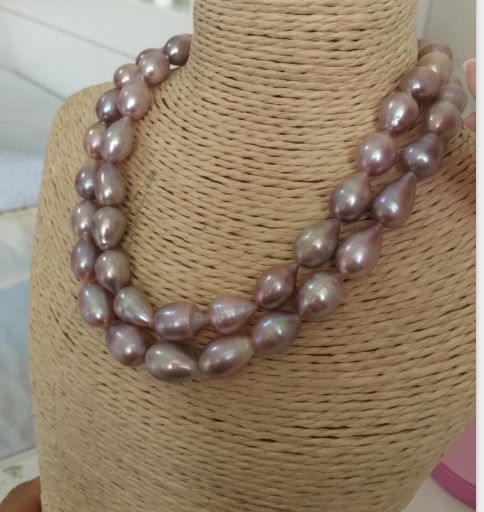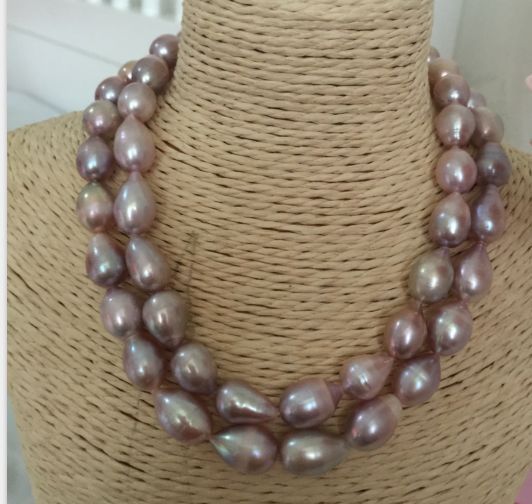 double strands 11-12mm south sea baroque lavender pearl necklace 18"