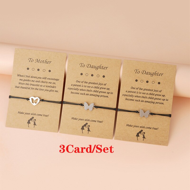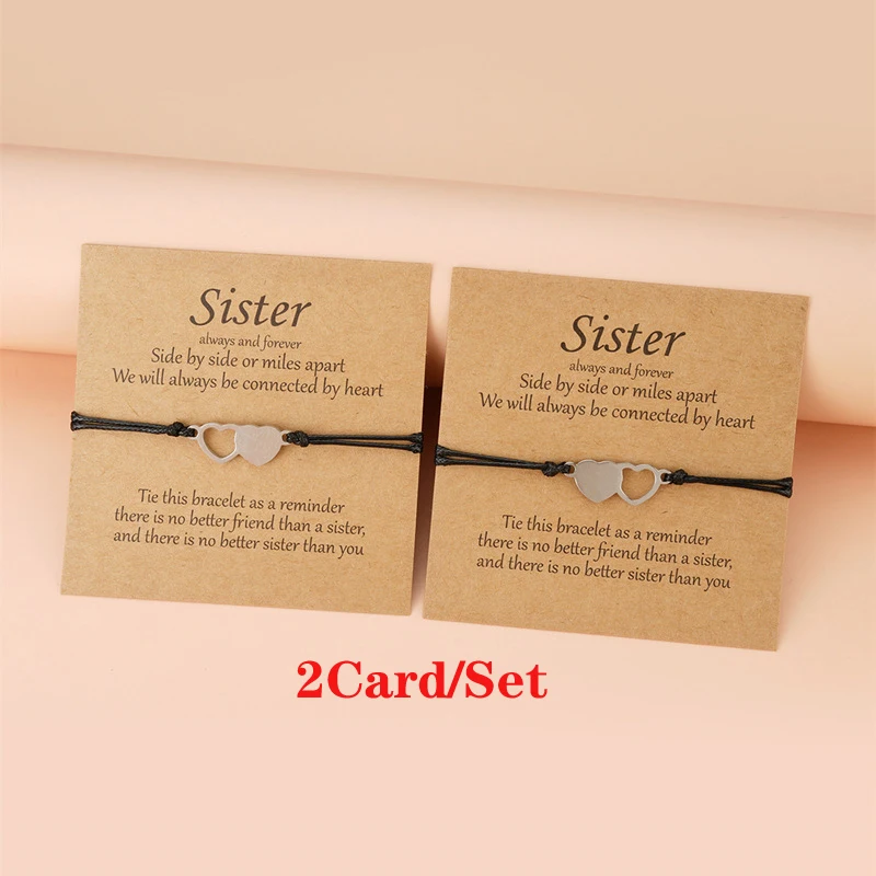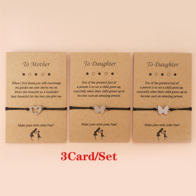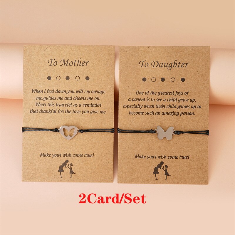 Doule Heart Butterfly Sisters Card Bracelets Friendship Stainless Steel Handmade Birthday Gift Mother's Day Jewelrys
