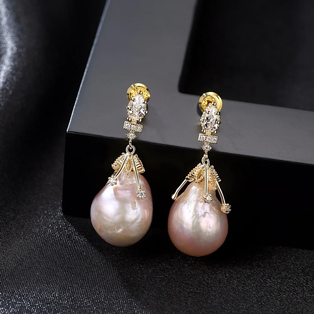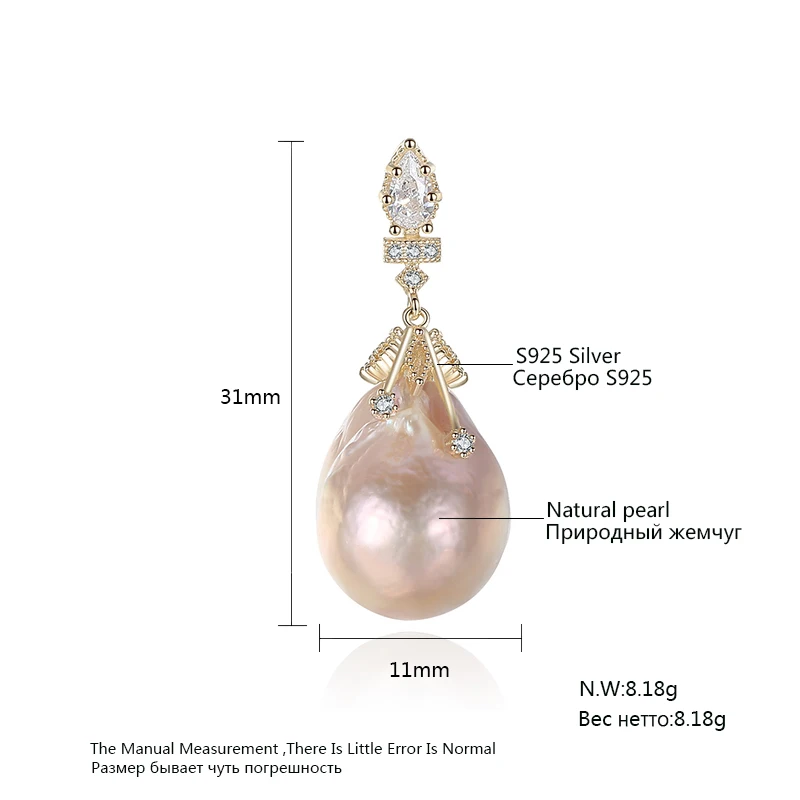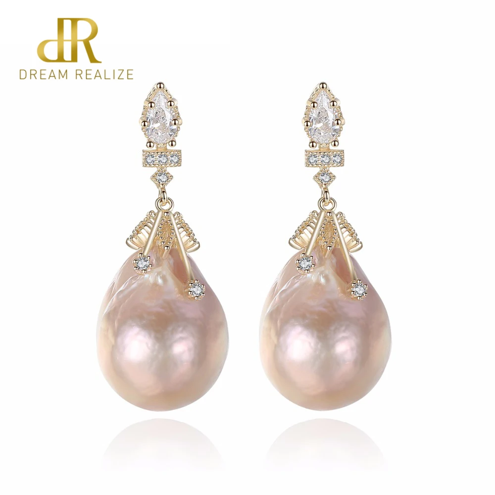DR Brand Baroque Oval Shape Natural Pearls S925 Stud Earrings and 925 Sterling Silver for Women Fine Jewelry