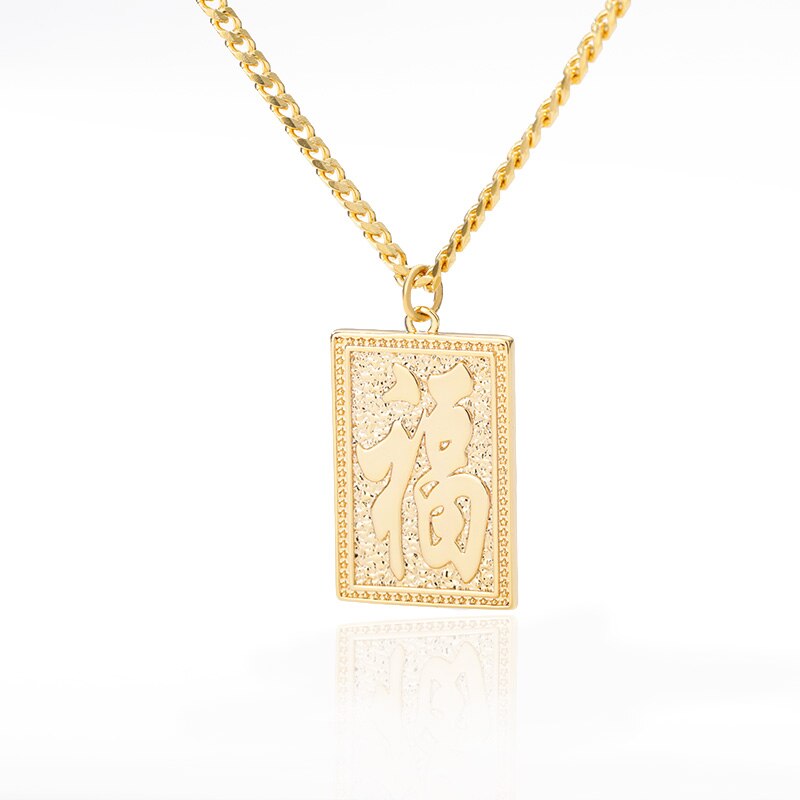 Dragon Necklace Golden Cuban Chain Hanging Engraved Dragon On Front With "fu" Engraved On Back Collar Amulet Faith Jewelry Gifts