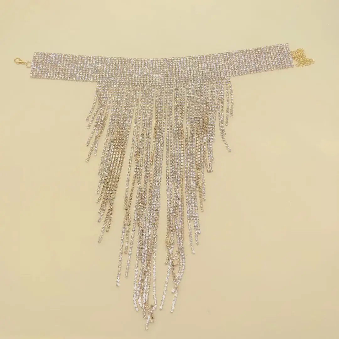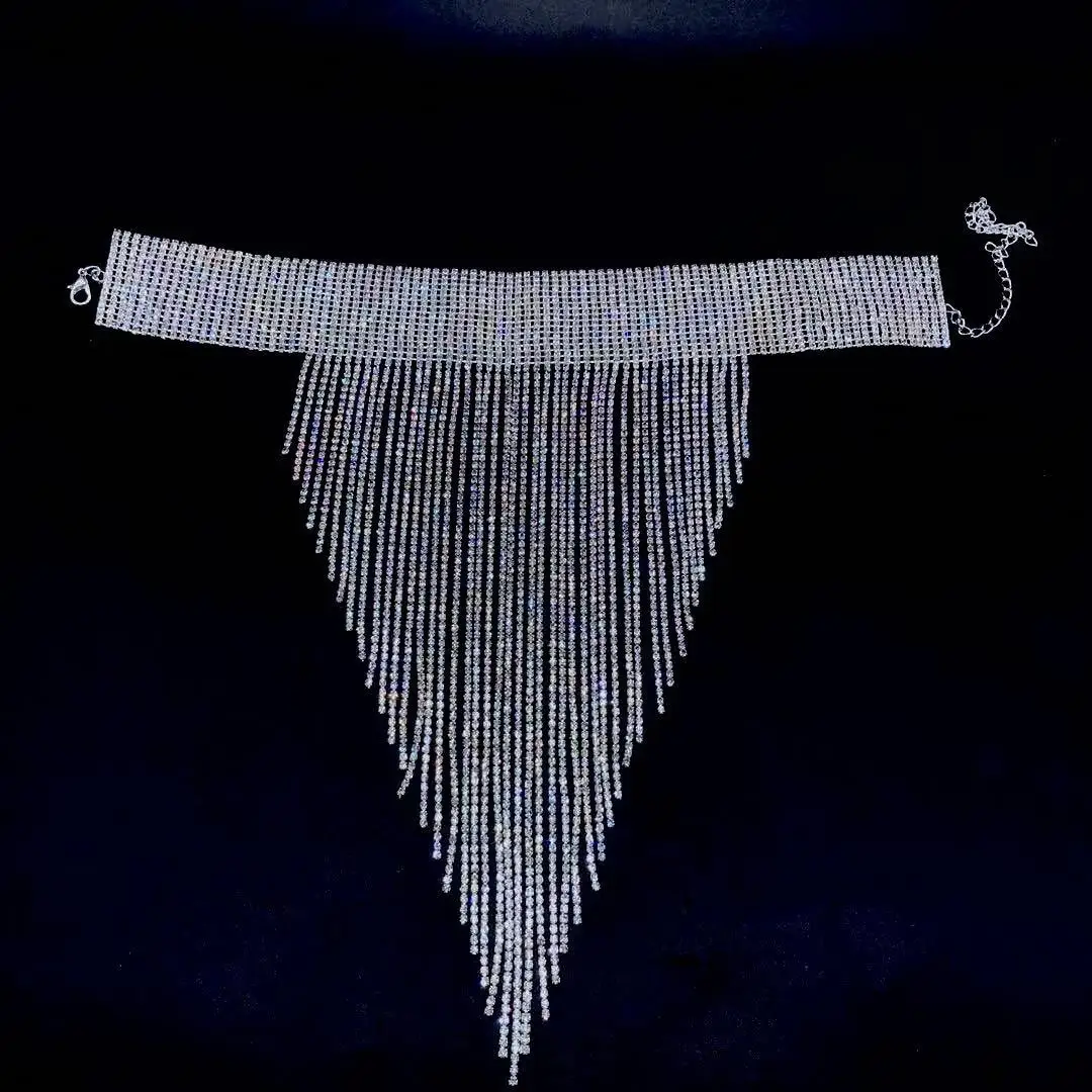 dress sexy shiny crystal Tassel Necklace nightclub DJ stage dress Carnival Party steel pipe jazz dance accessories