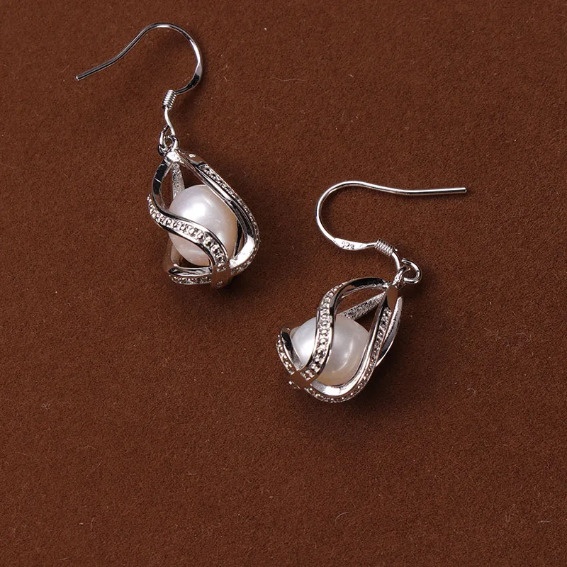 Drop Earrings 925 Sterling Sliver Drop Earrings Pearl Cage Wedding Engagement Faashion Jewelry Hanging Earrings For Women