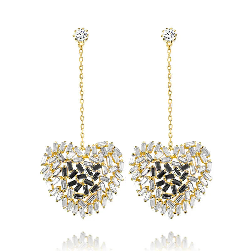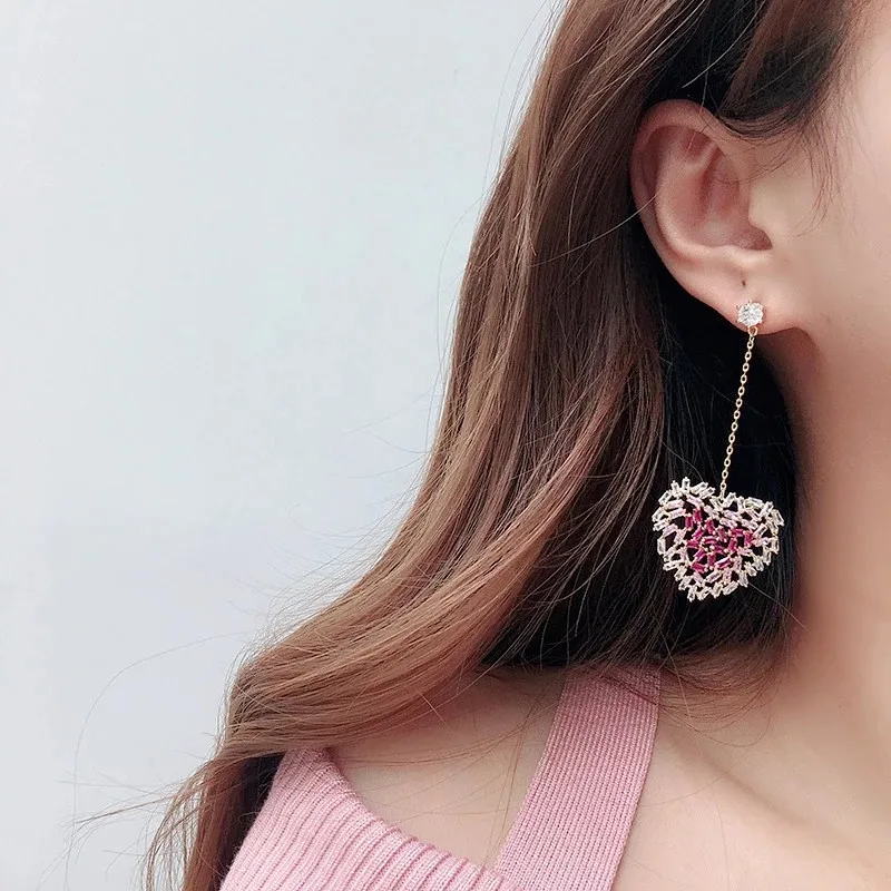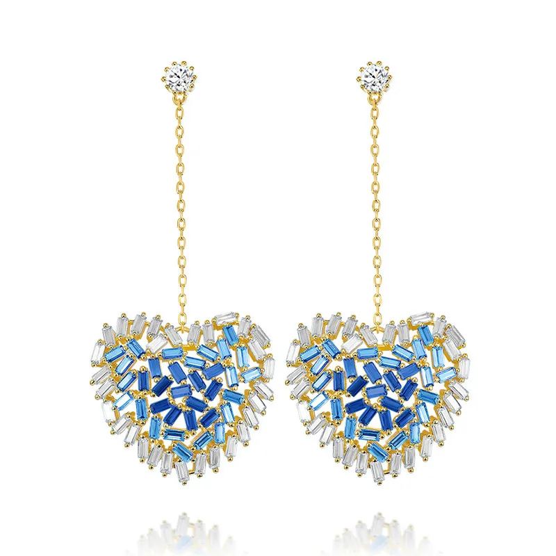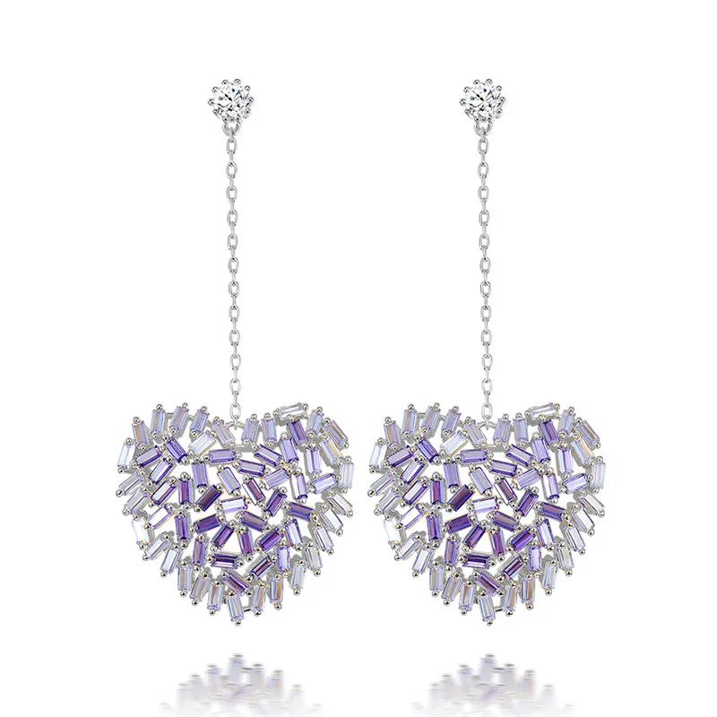 Drop Earrings For Women S925 Sterling Silver Needles Fairy Heart Gradient Temperament Multicolor Fine Jewelry Not Allergic