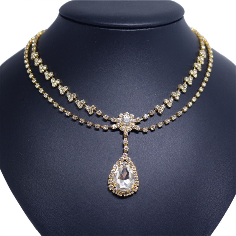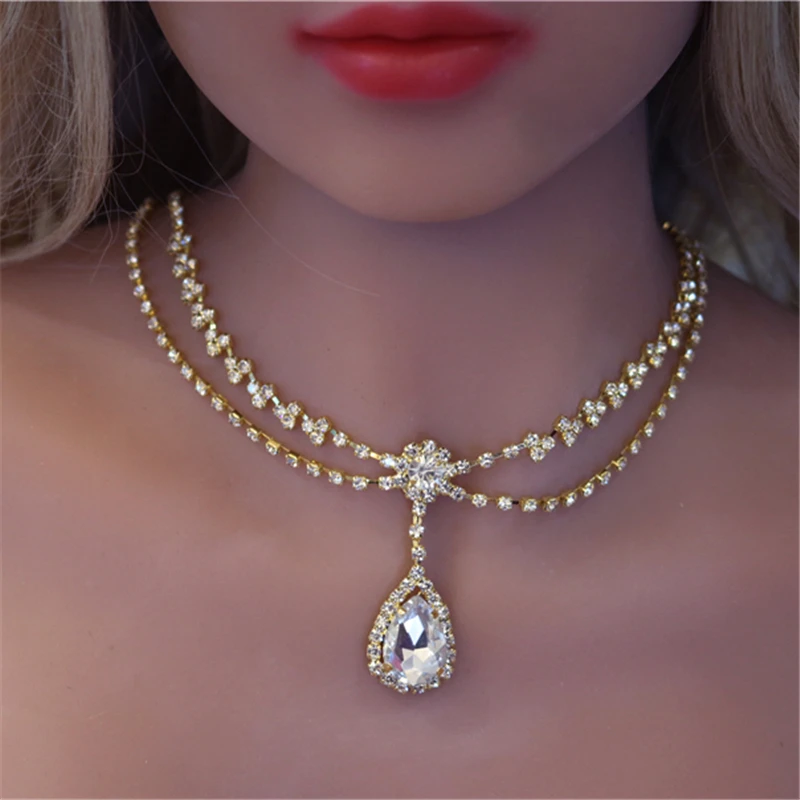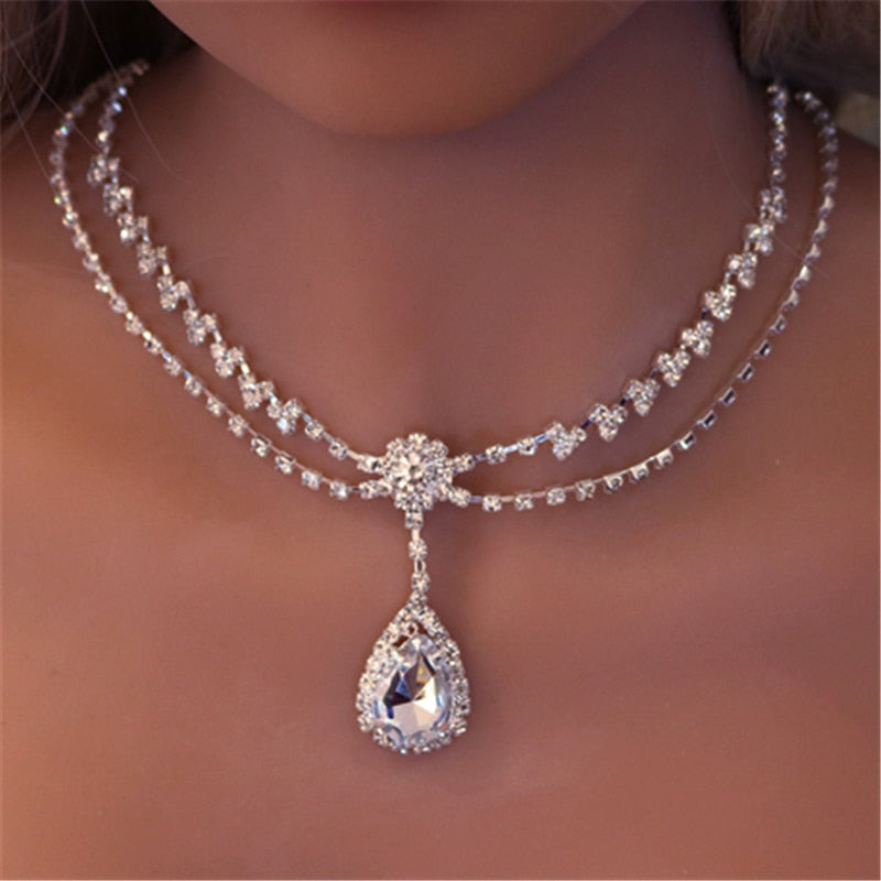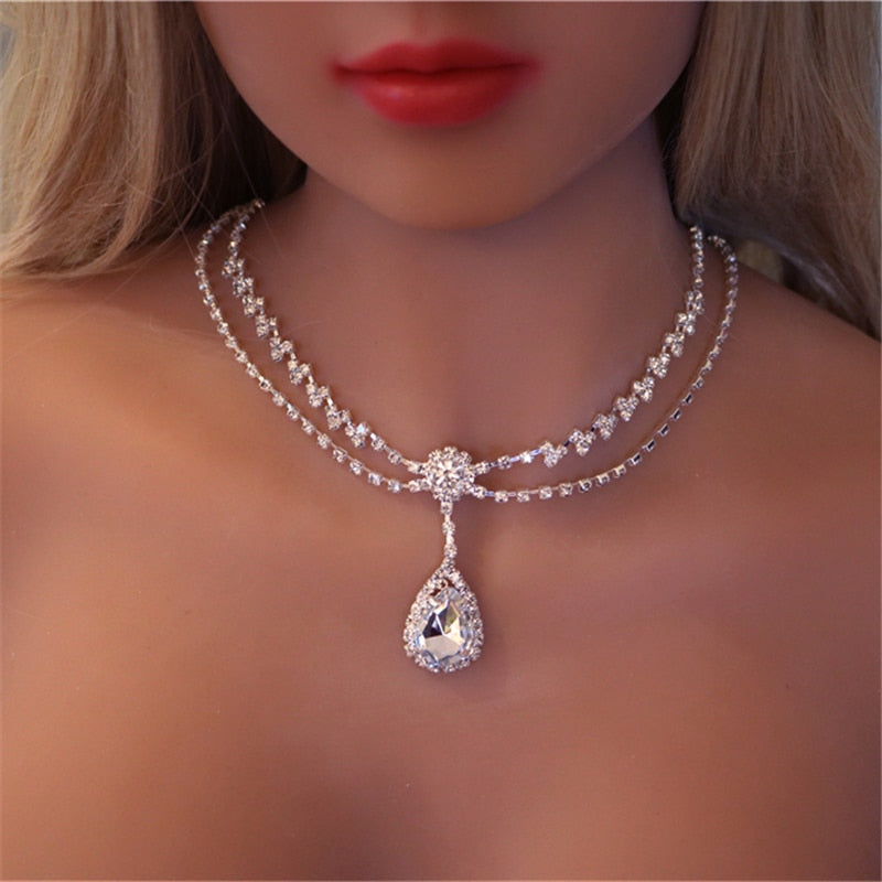 Drop Shape Delicate Simple Rhinestone Princess Necklace Shining Crystal Jewelry Sweet Women's Date Necklace