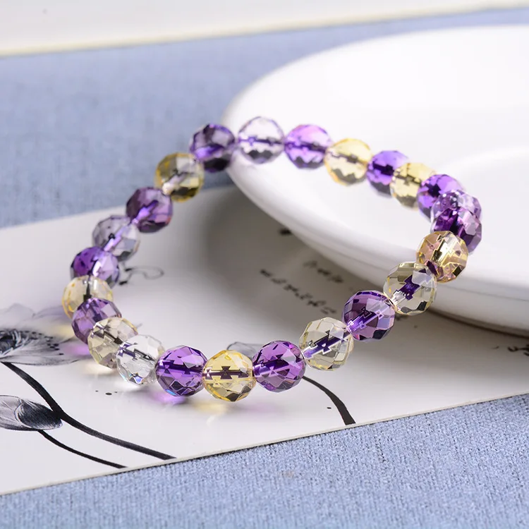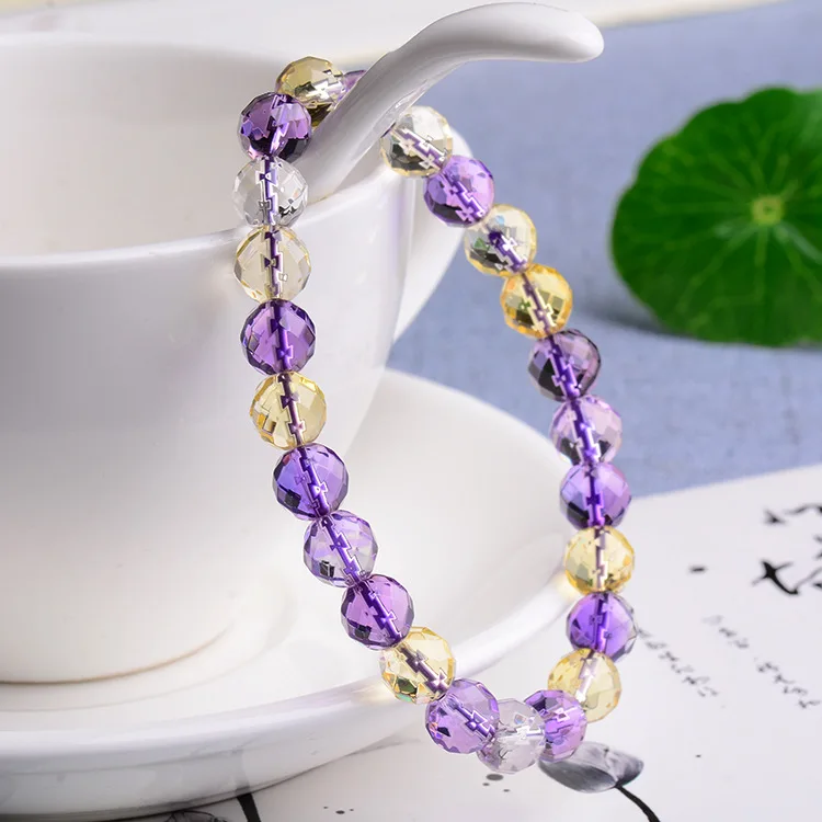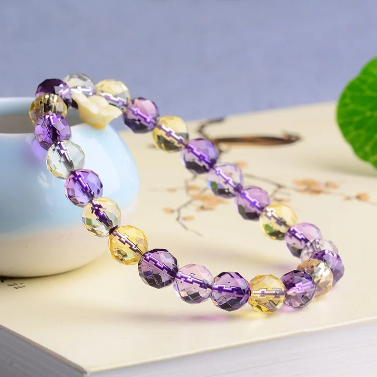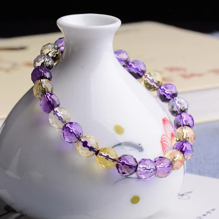 Drop Shipping 64 Sections Natural Quality Grade Violet Yellow Crystal Bracelet Fine Gemstone Bracelet Jewelry For women Gifts