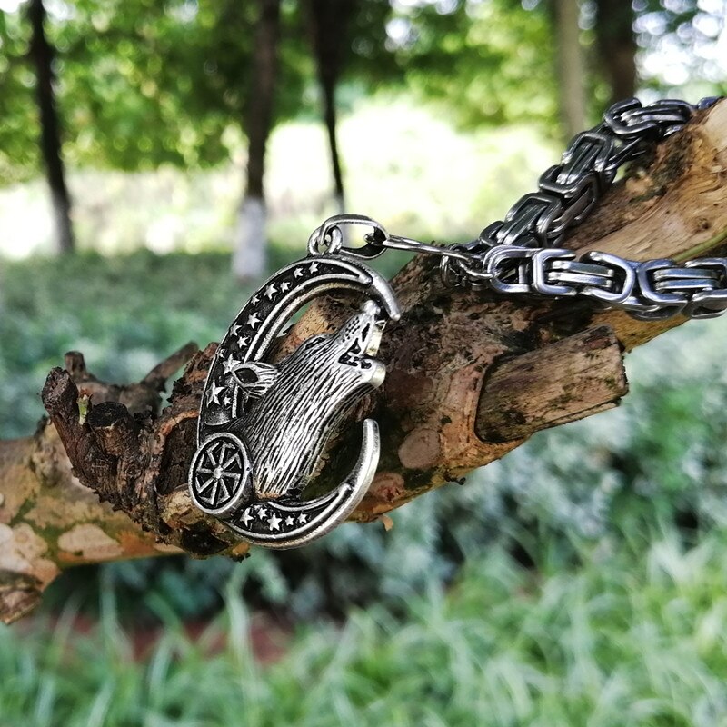 Drop Shipping Kolovrat Wolf Pendant Necklace Men Norse Viking Stainless Steel Chain Necklace