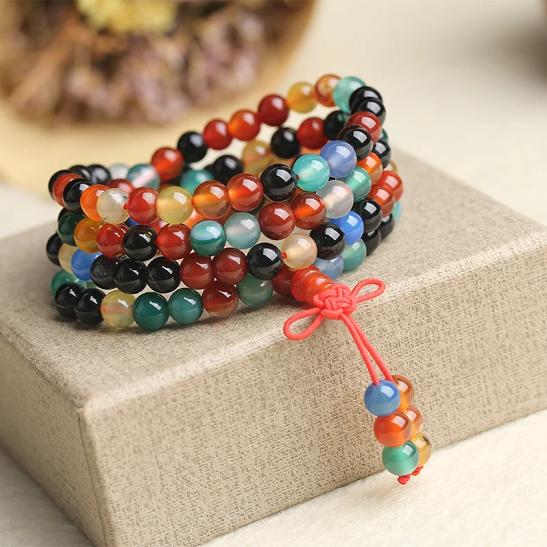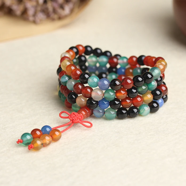 Drop Shipping Natural 6mm Colorful Agate Beaded Bracelets 108pcs Buddhist Tibetan Bracelet Jewelry For Man&woman Gifts