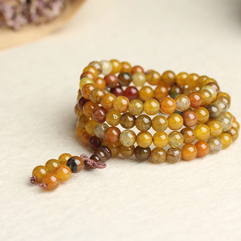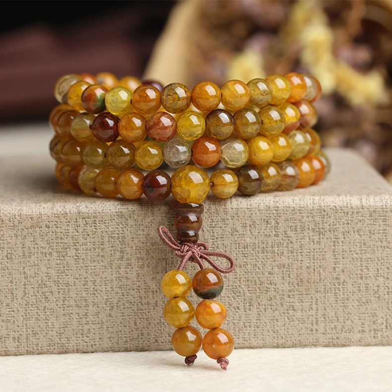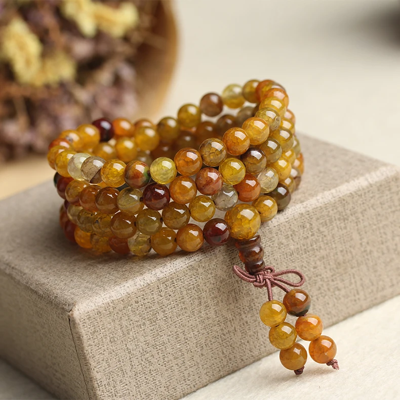 Drop Shipping Natural 6mm Stone Dragon Agate Beaded Bracelets 108pcs Buddhist Tibetan Bracelet Jewelry For Man&woman Gifts