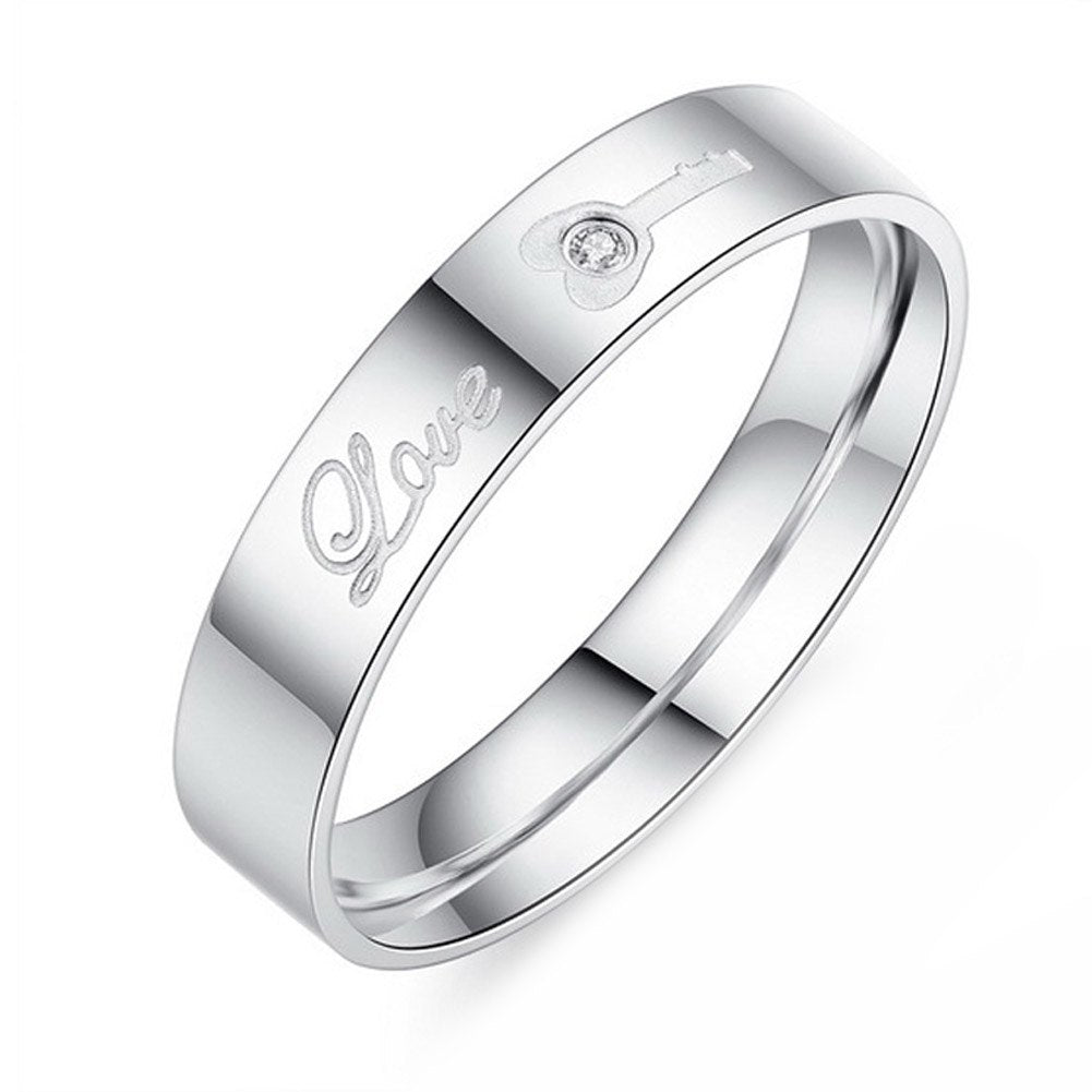 Drops 1 Piece Fashion Rhinestone Love Lock Ring titanium steel couple wedding ring set his and hers promise ring