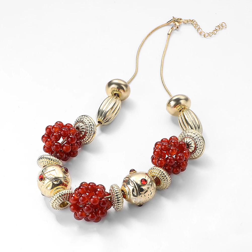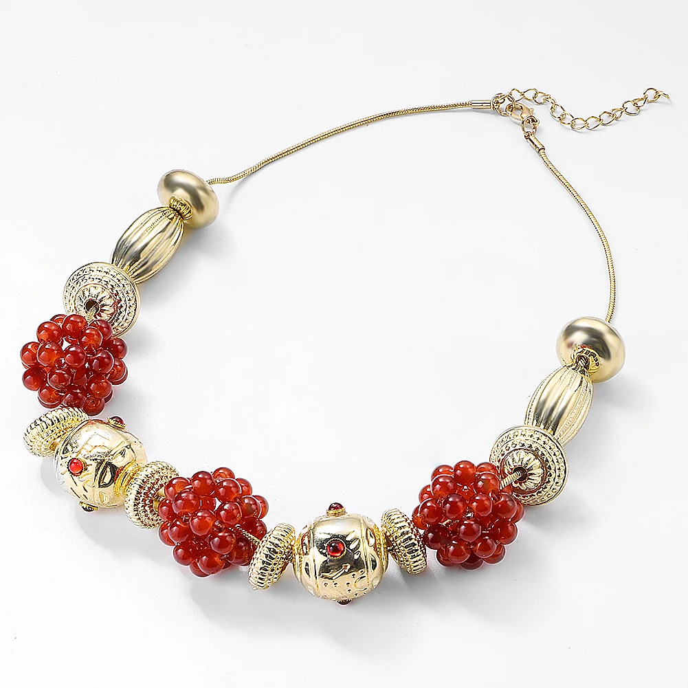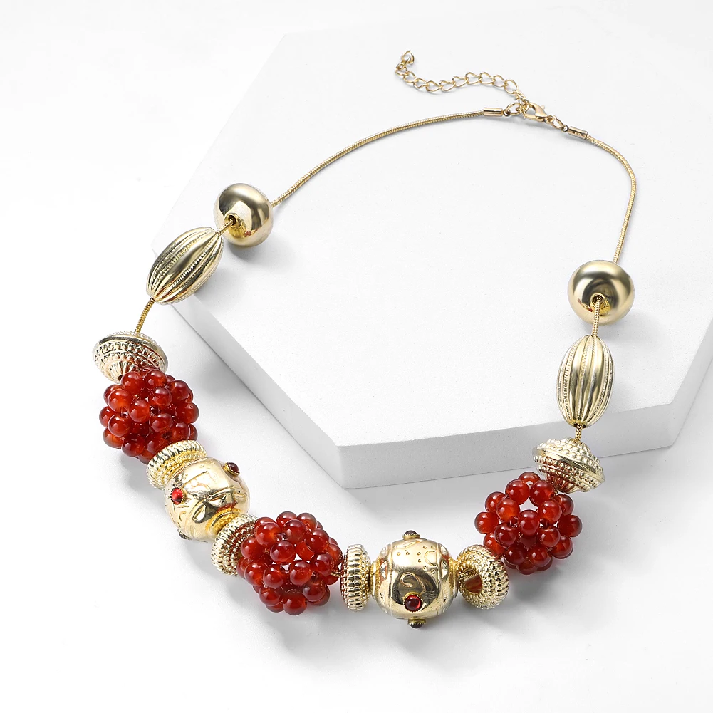 Dvacaman Bohemian Beaded Collarbone String Gri Handmade Pomegranate Fruit Flower Necklace Baroque Style Pearl Mushroom Bracelet