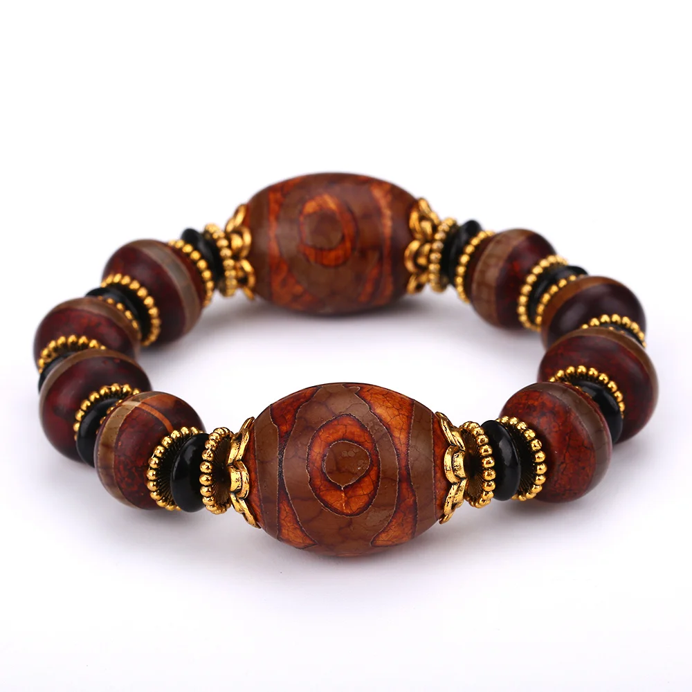 Dzi Agate Big Bracelet Pop Men Bracelet Natural Picture Stone Jewelry Fashion Gemstone Buddha Beads Health Bracelet Accessories