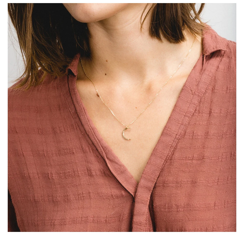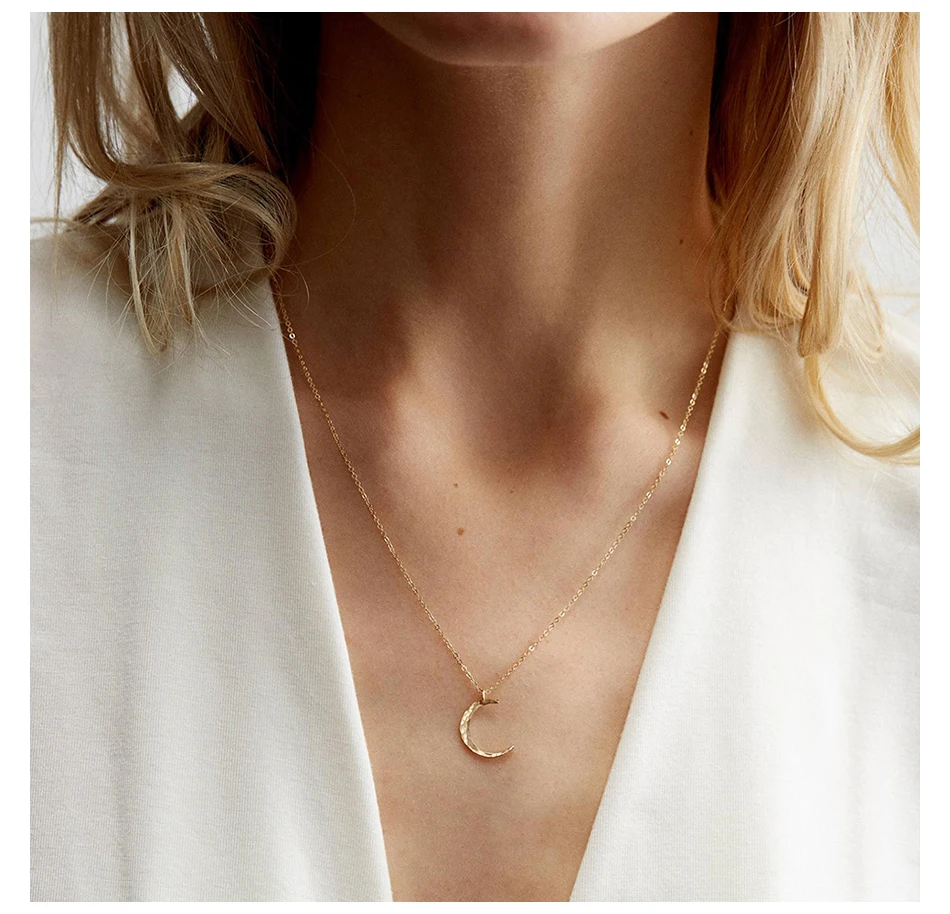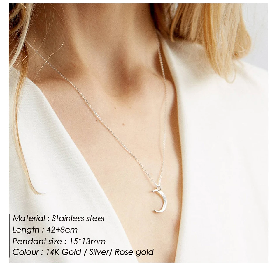 e-Manco Statement Stainless Steel Necklace Women Moon Pendant Necklace dainty Chokers Necklaces for women Graduation Gift