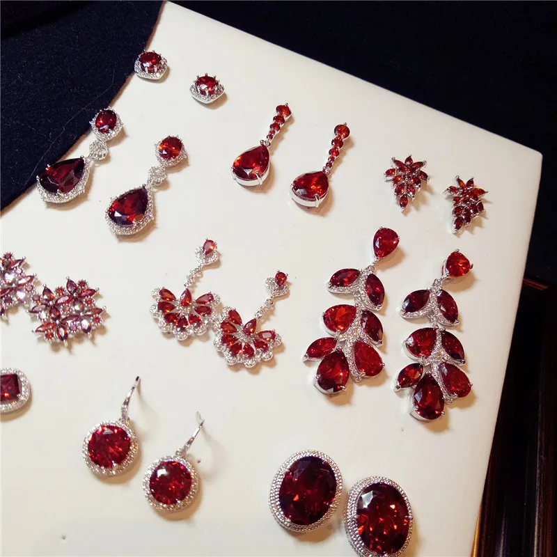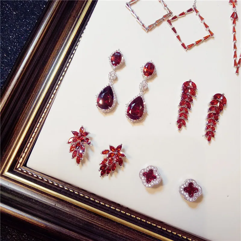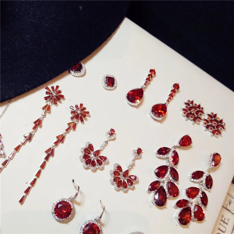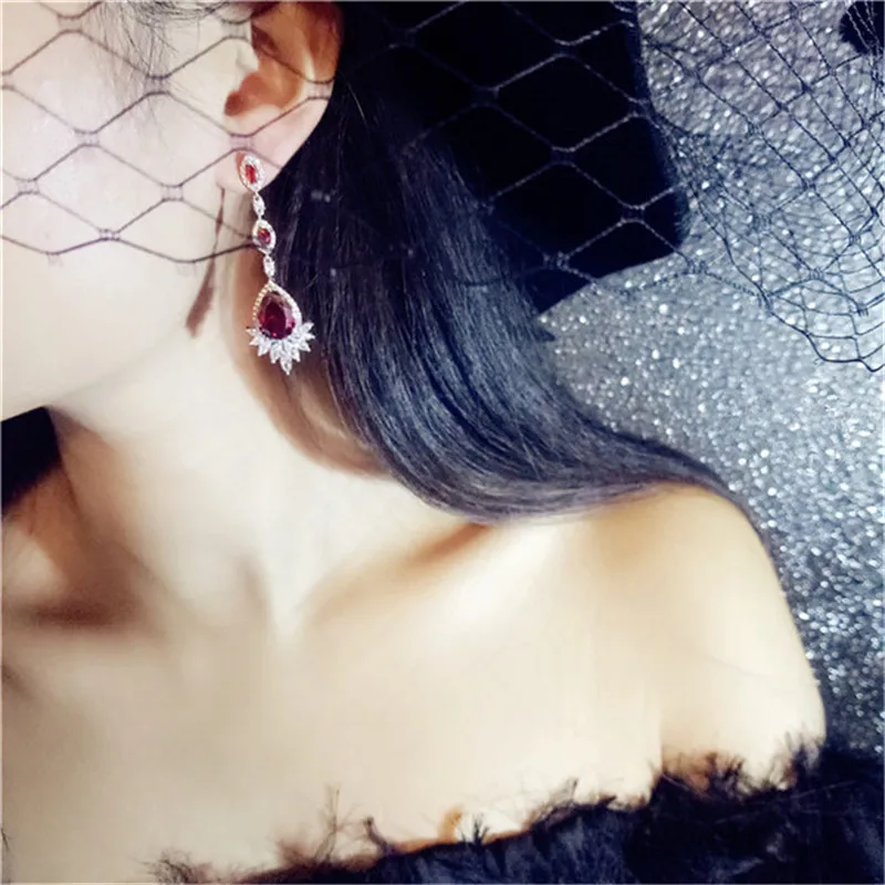 Eardrop Earrings For Women Pigeon Blood Ruby S925 Sterling Silver Hyperbole Crystal Diamant Vintage Fine Jewelry Big Aretes