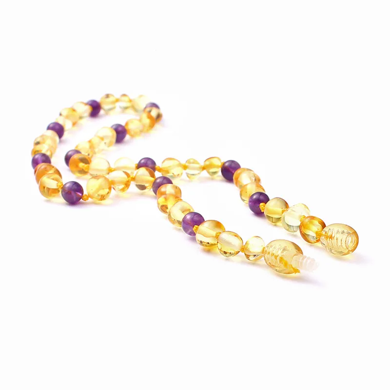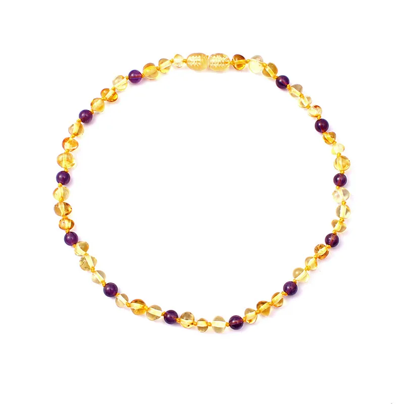 Amber Teething Necklace for Baby Jewelry Baltic Natural Amber Beads 5mm Amethyst Collar Gifts Kids Necklace
