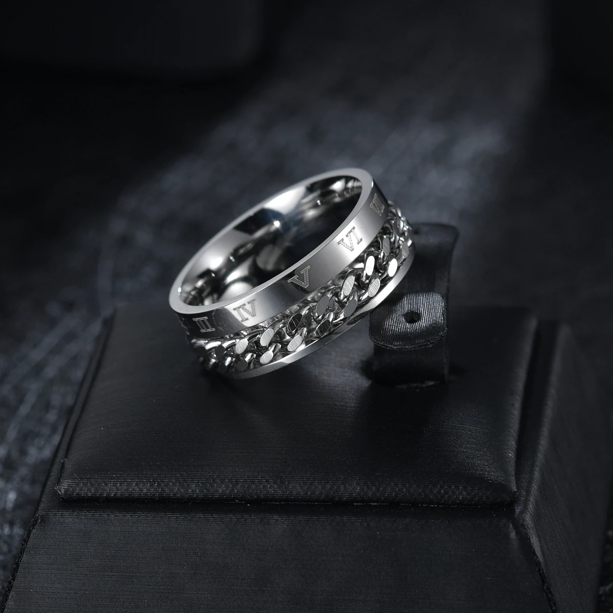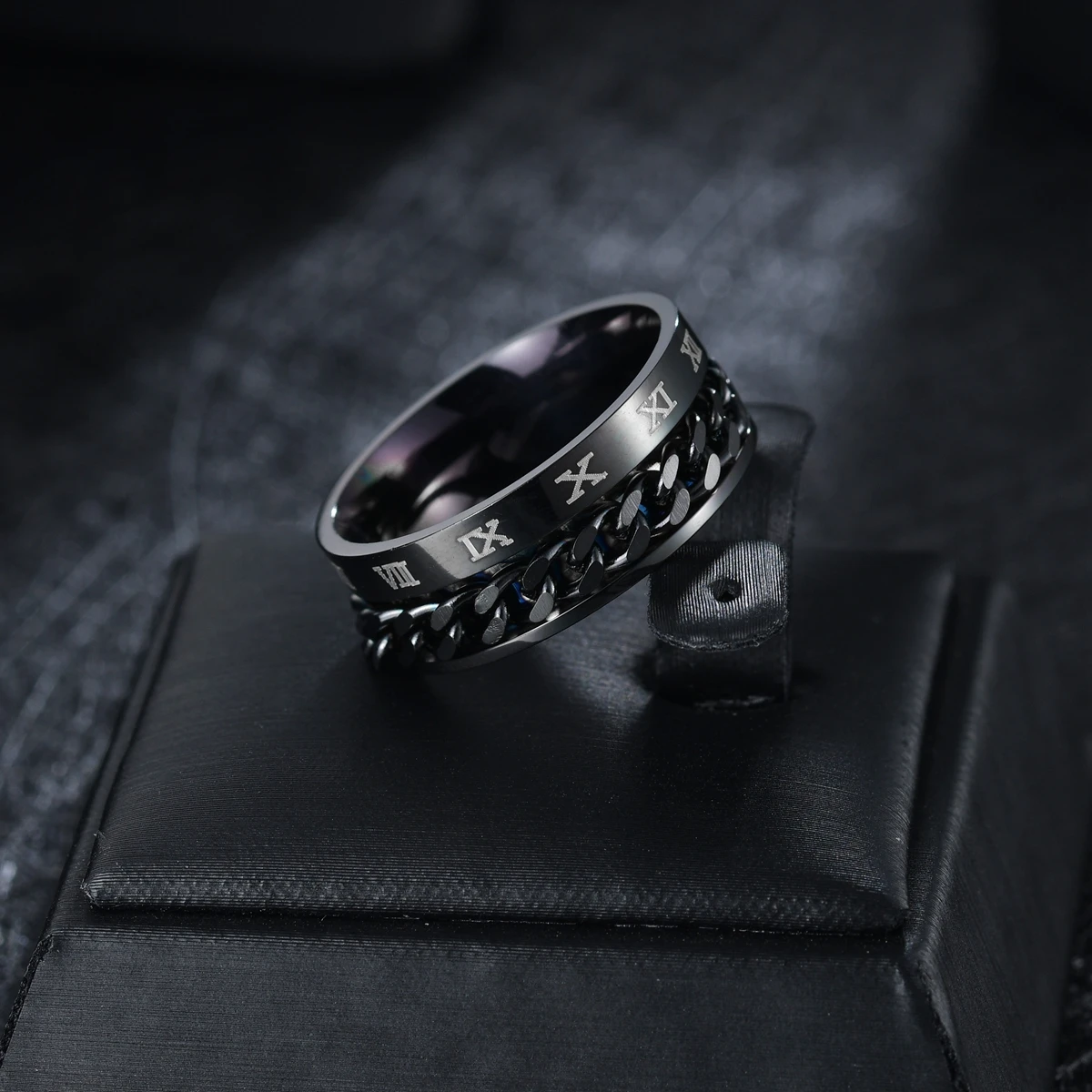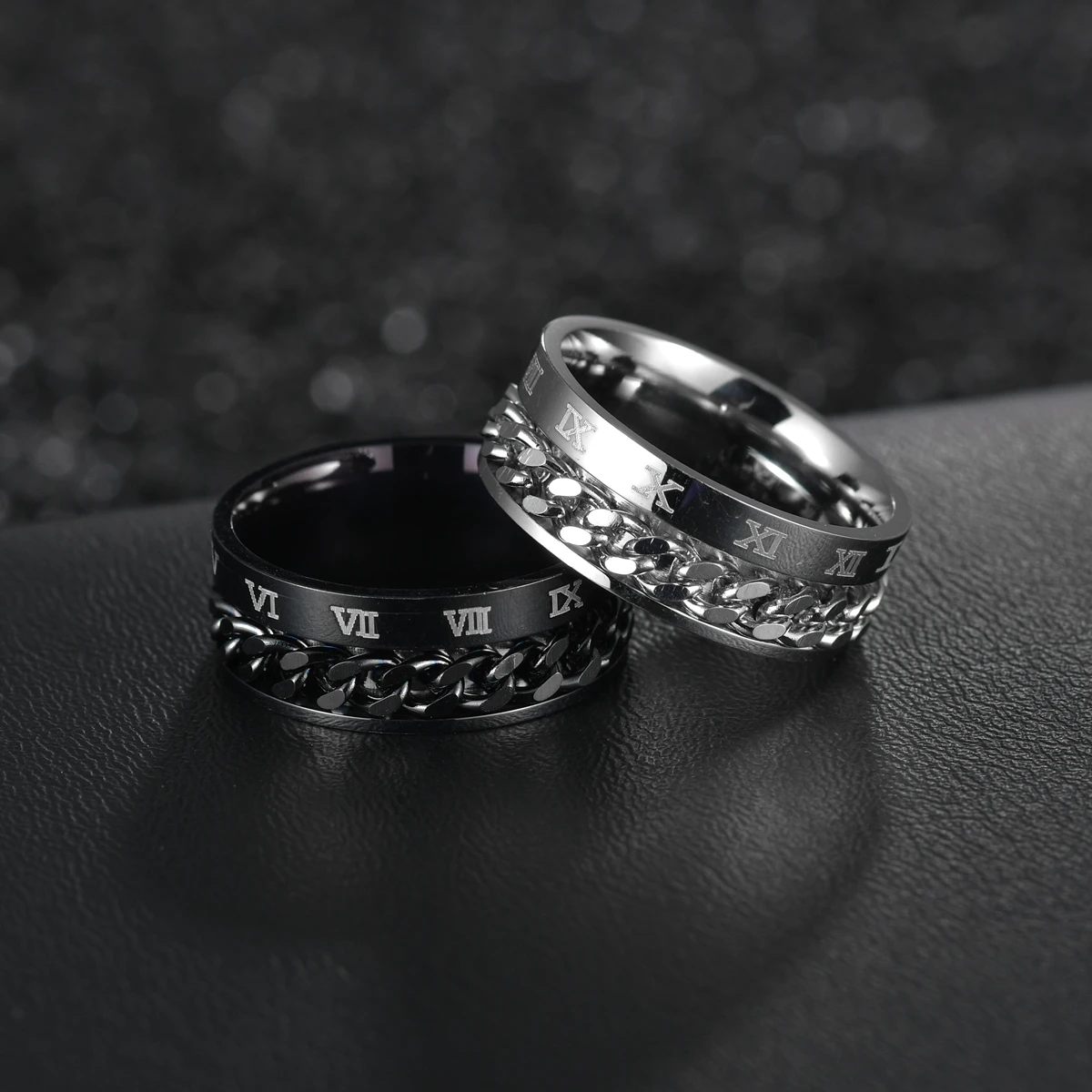 EDC Finger Fidget Spinner Stainless Steel Chain Rotatable Ring Men Classical Rome Digital Power Sense Gift