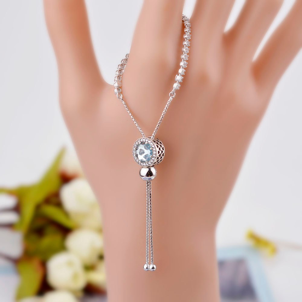 925 Sterling Silver Bracelet for Women With Cubic Zircon Crystal Charm Bracelets Wedding Jewelry Gift For Woman Adjustable