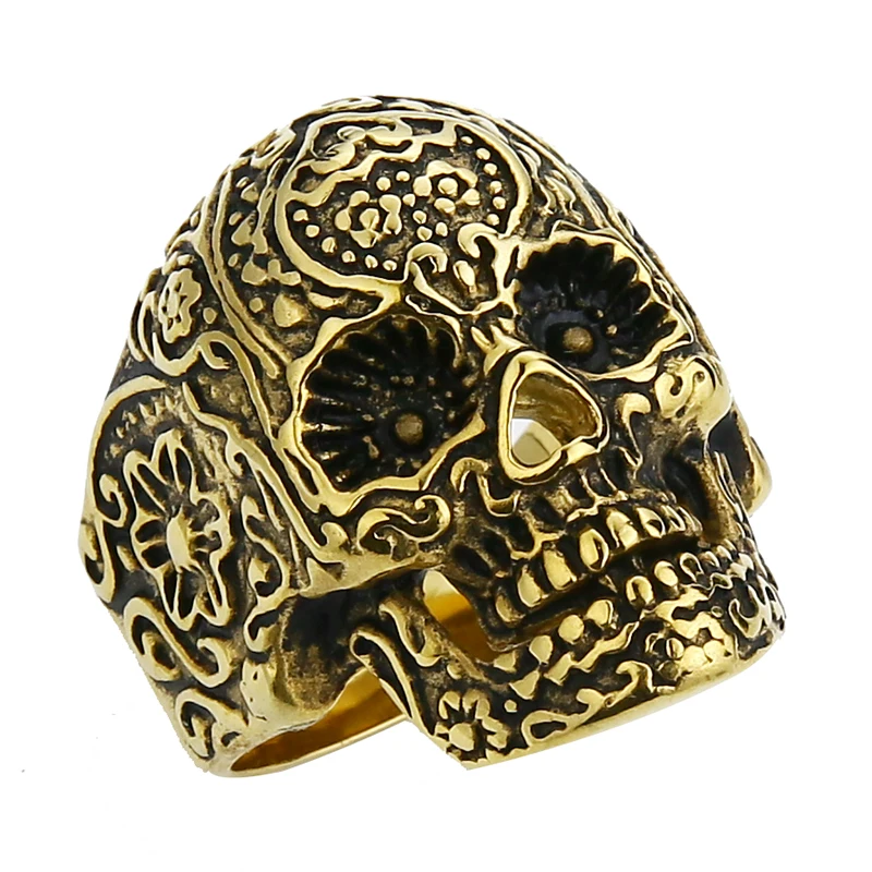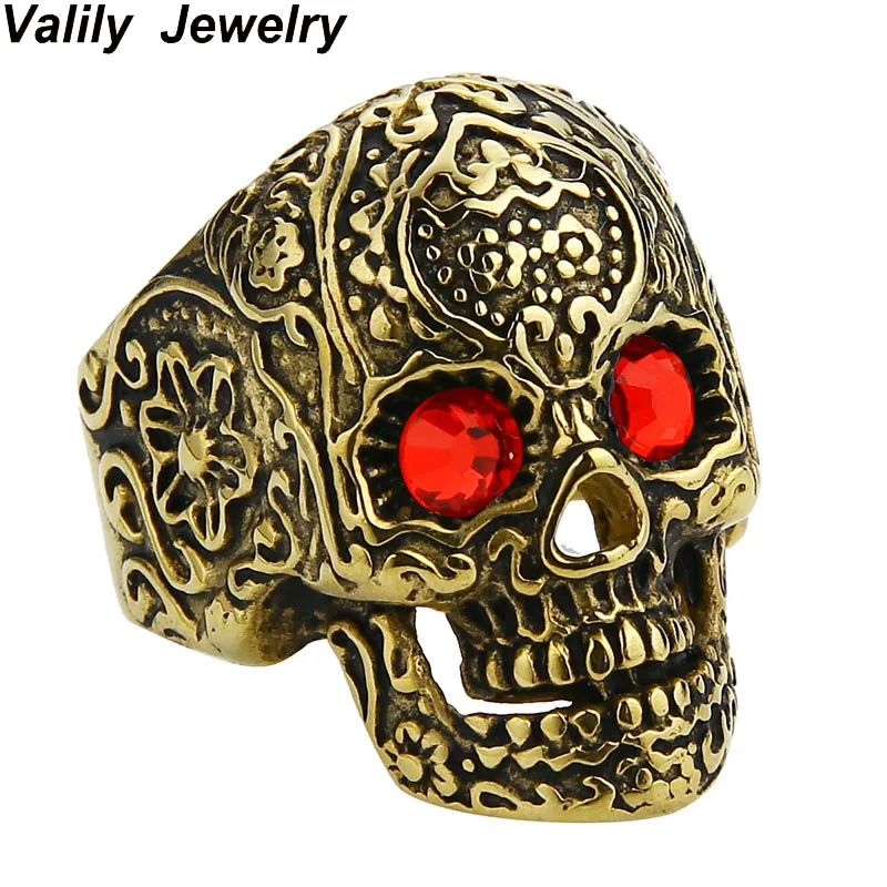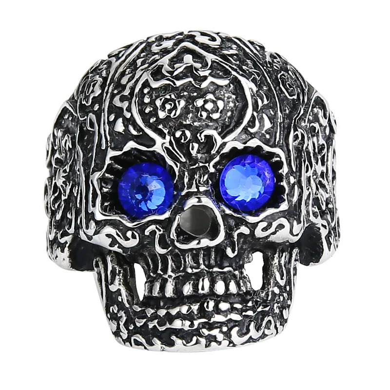 Anel Masculino Punk Vintage Trend Men's Ring Gothic Men's Skull Flower Red/Blue Eyes Biker Satinless Steel Ring