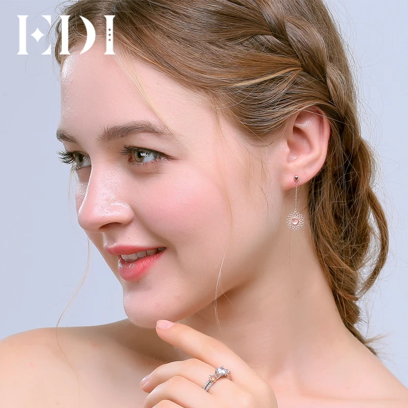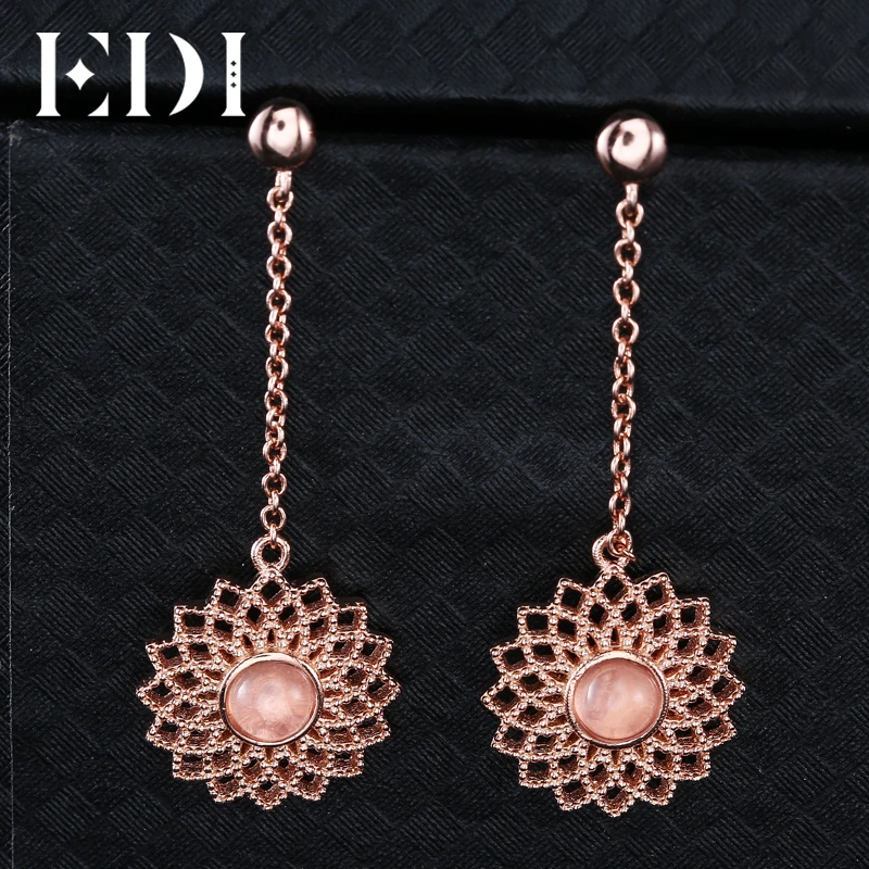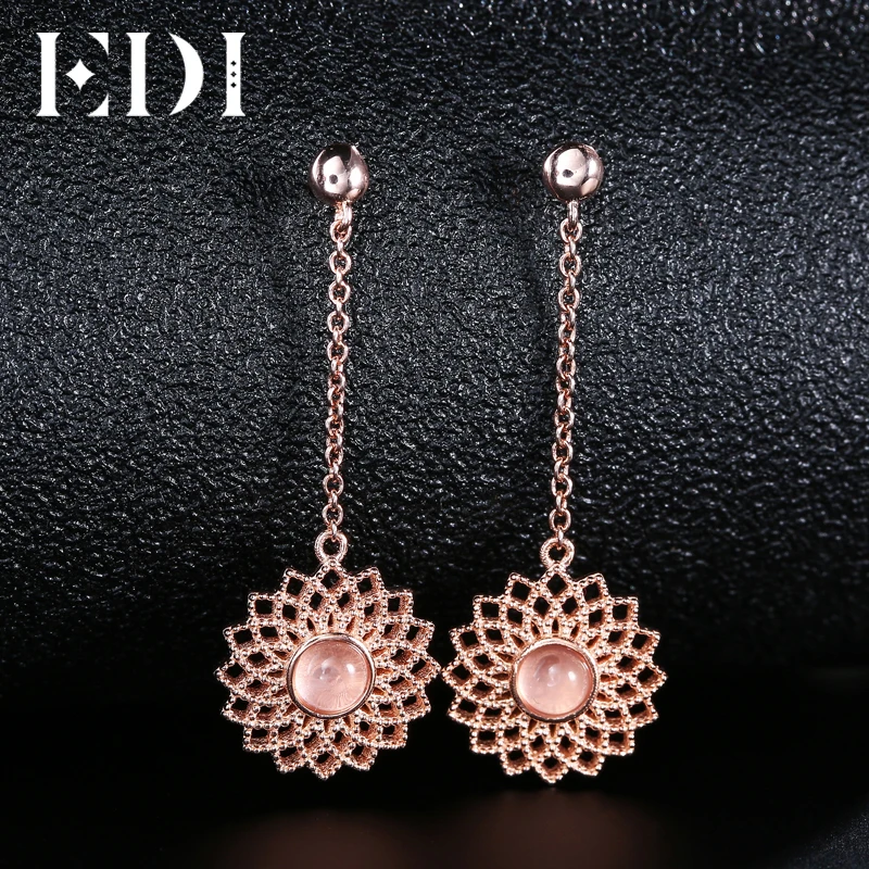 Classic Rose Quartz Drop Earring 925 Sterling Silver Flowers Dangle Earrings For Women Fine Jewelry GZE0069
