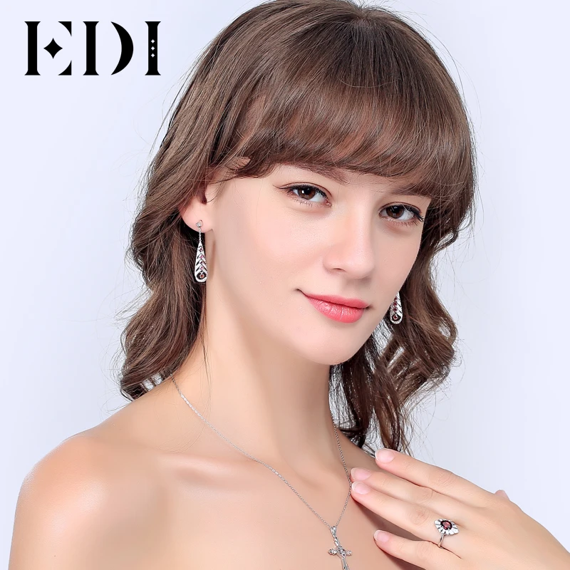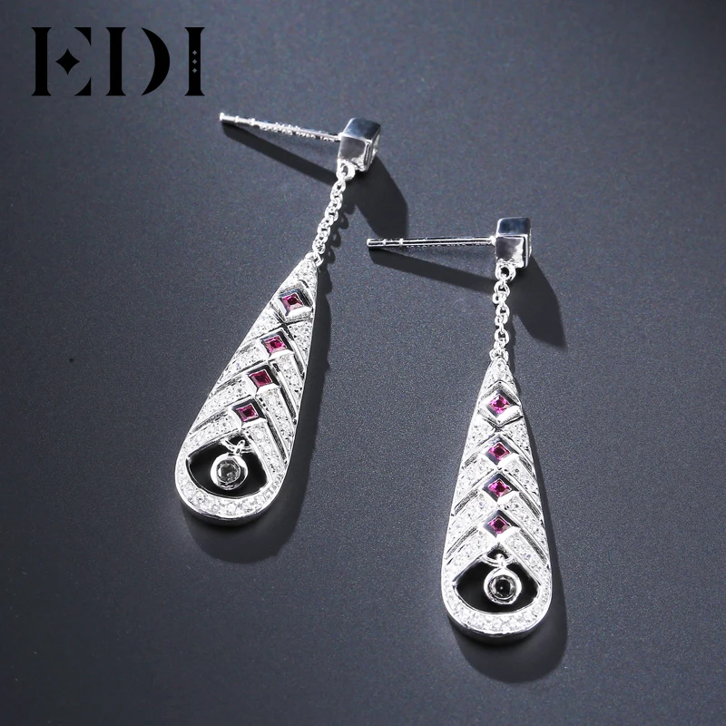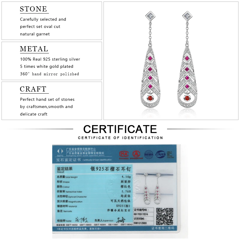 Luxury Garnet 925 Sterling Silver Long Drop Earrings Feather Oorbellen Hangers Trendy Dangle Earring For Women Fine Jewelry