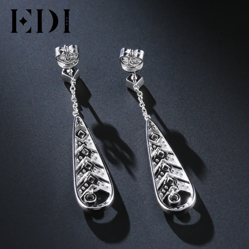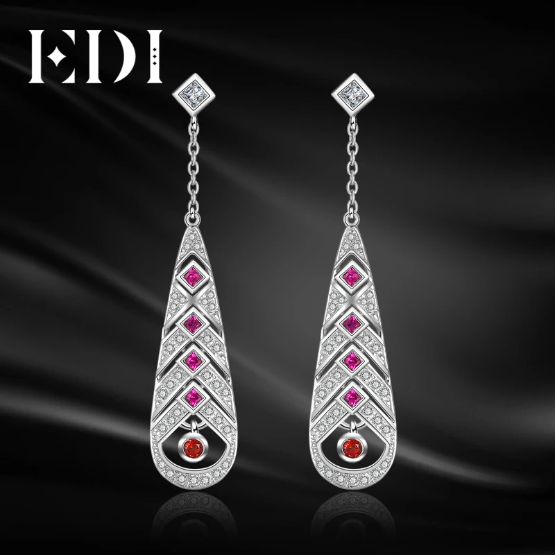 Genuine Natural Garnet 925 Sterling Silver Long Drop Earrings For Women Feather Female Fine Jewelry