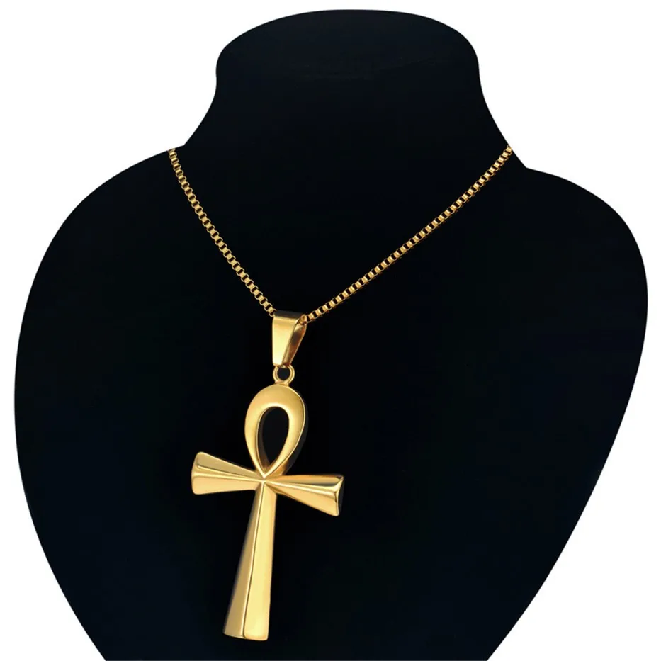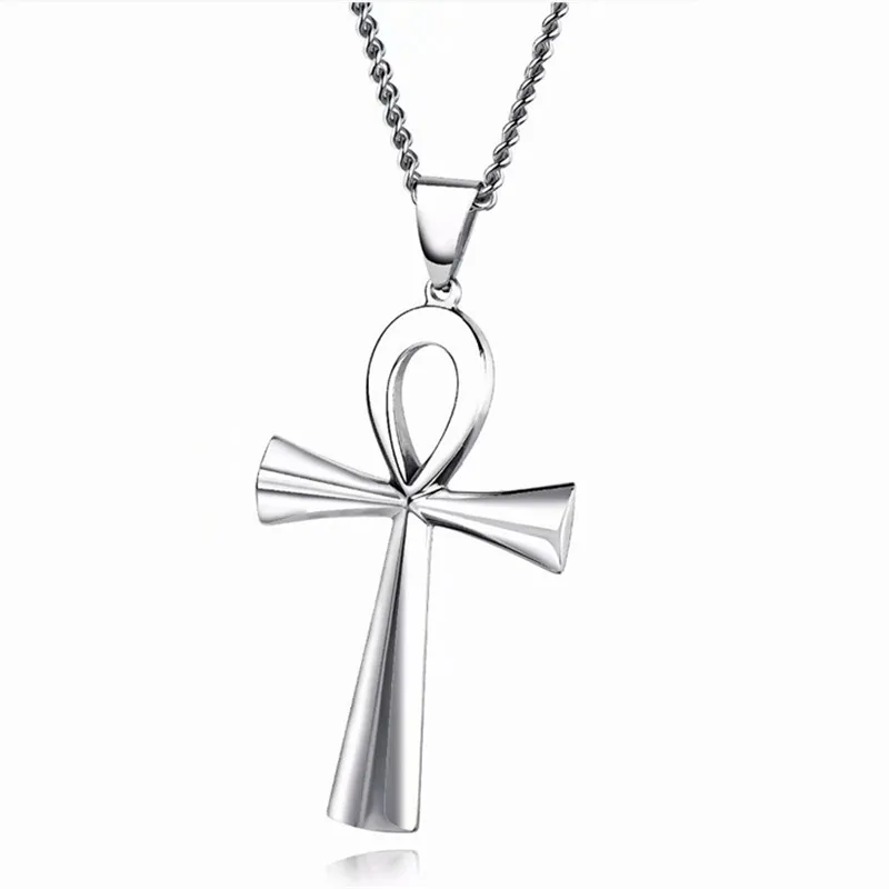 Egypt Ankh Cross Pendant Necklace For Women Men Key of Life Stainless Steel Egyptian Chain Necklace Hip Hop Jewelry