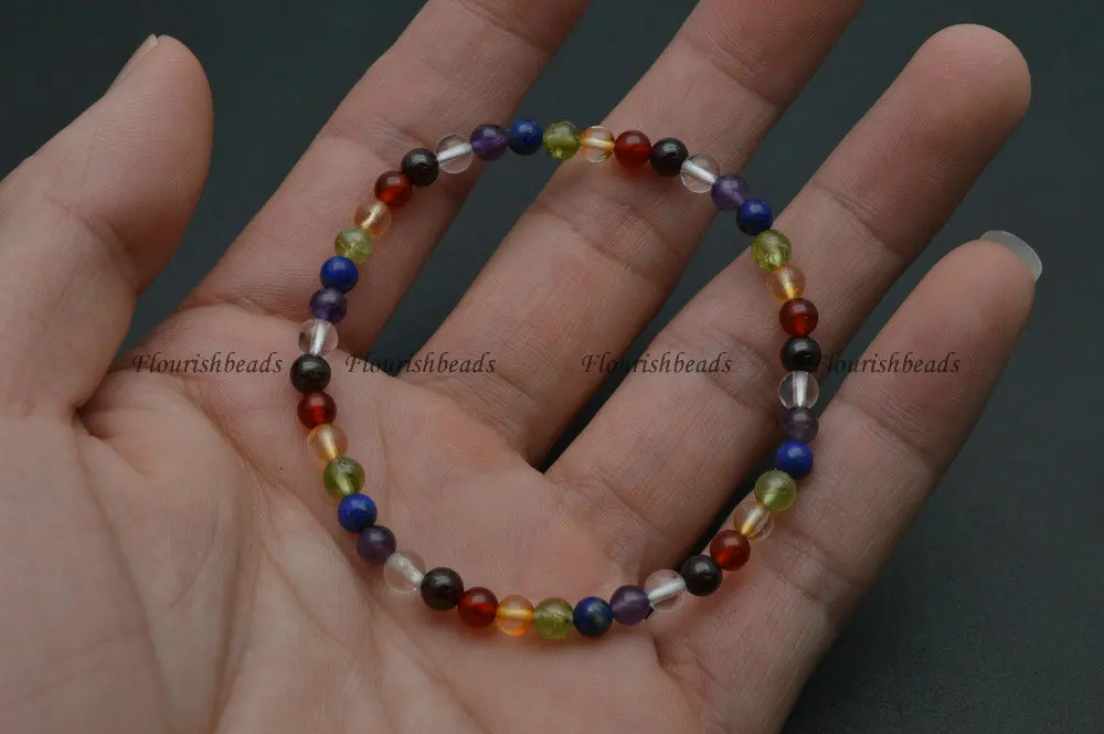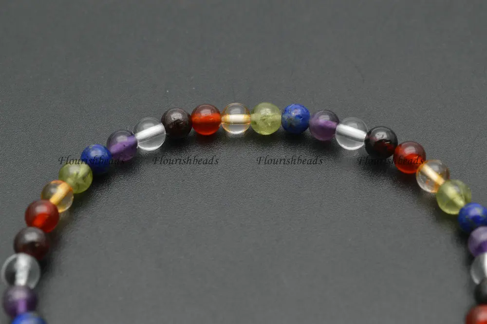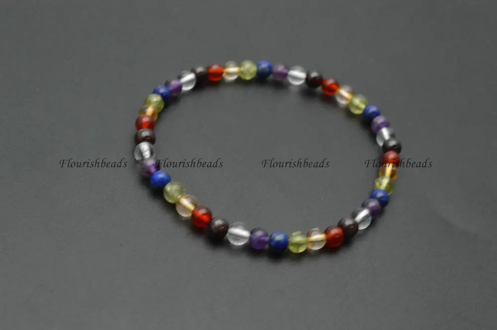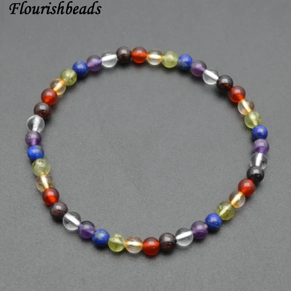 Elastic Line Chakra Bracelets Jewelry 4mm Multi Stone Round Beads Amethyst Lpais Peridot Crystal Citrine Garnet Red Agate