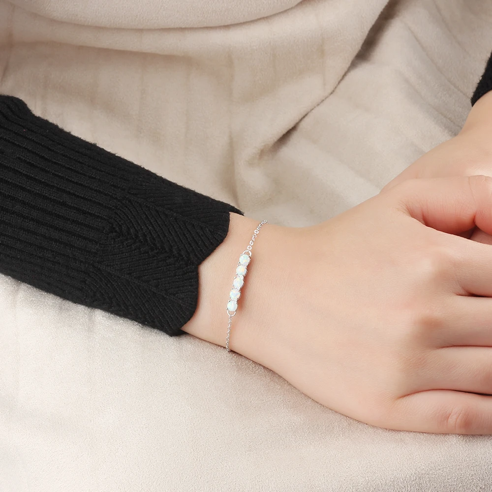 Elegant 925 Sterling Silver Bracelets For Women Fine Jewelry Multiple White Opal Bracelet Wedding Jewelry Gift (Lam Hub Fong)