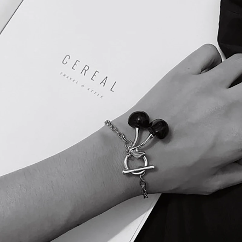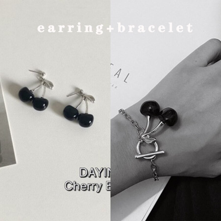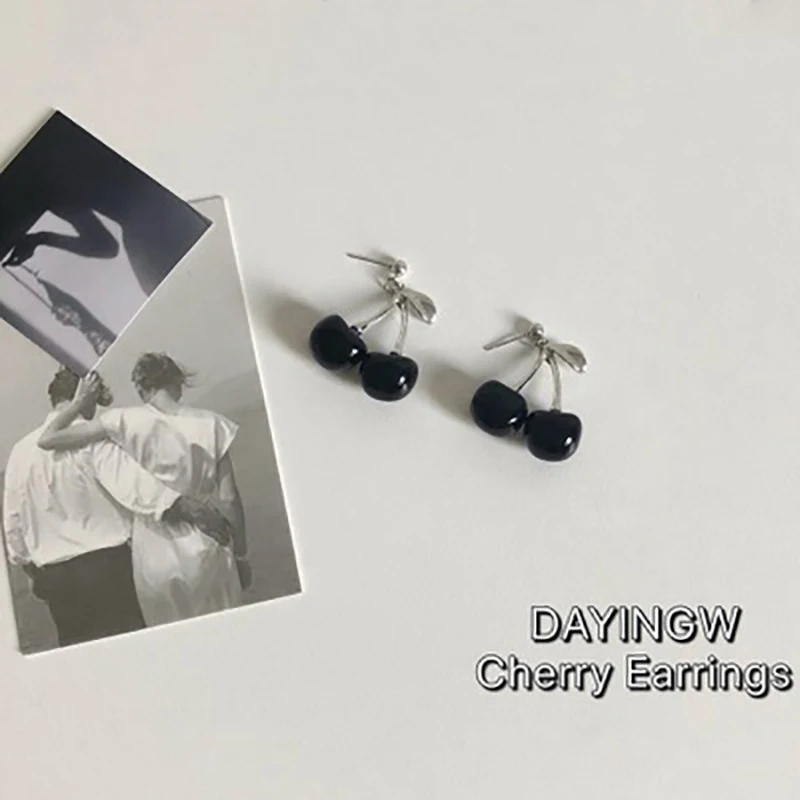 Elegant Black Cute Cherry Pendant Necklace Set Short Choker Silver Plated Chain Fruit Pendant Dainty Women Neck Jewelry