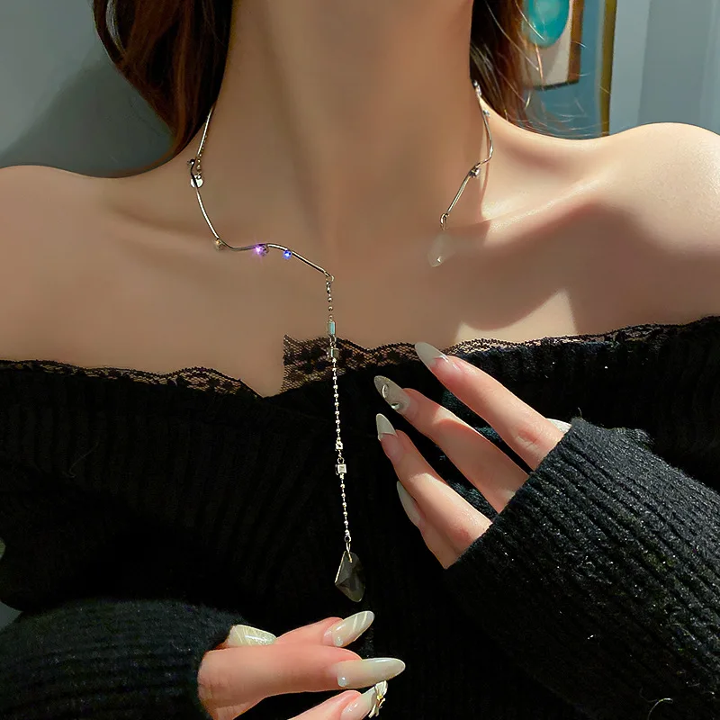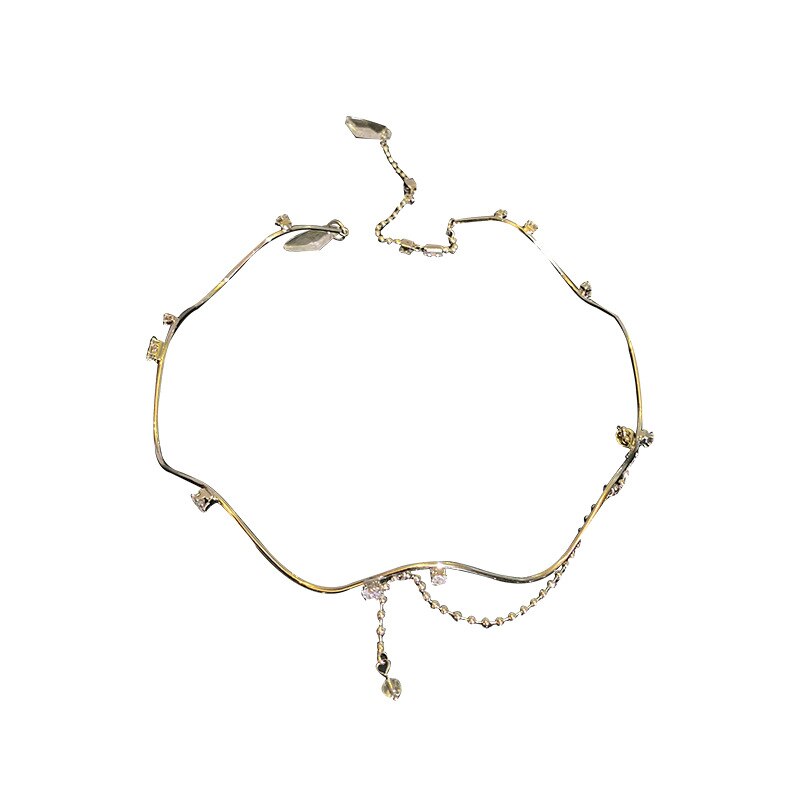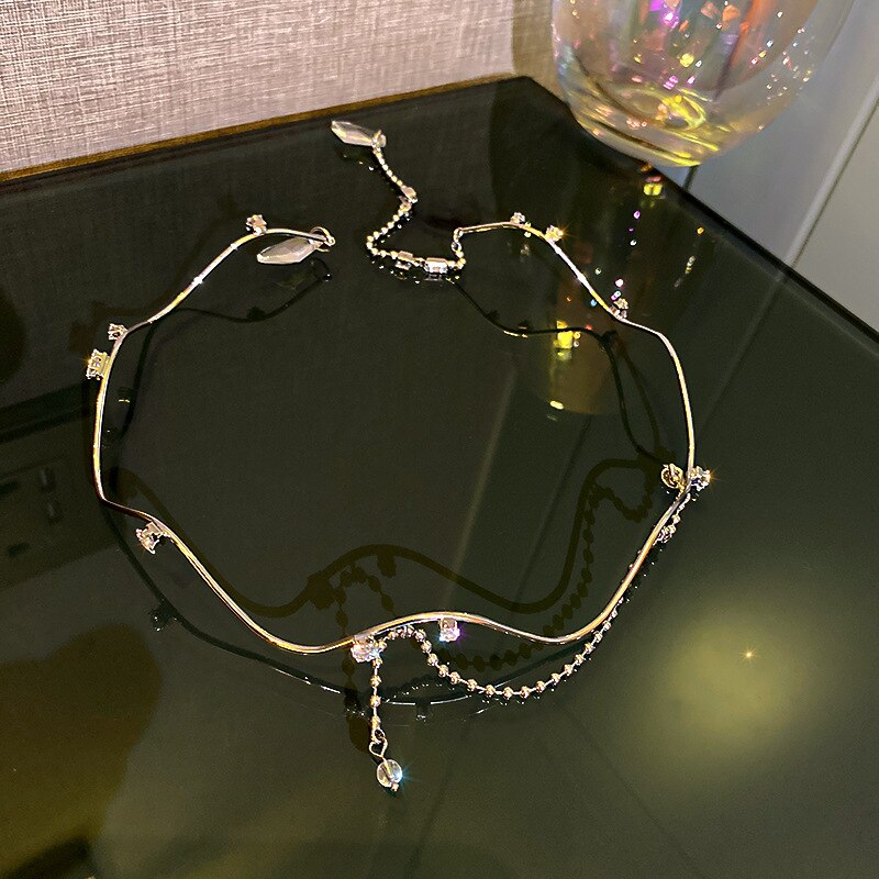 Elegant Crystal Cuff Wave Collar Necklace Waterdrop Pendant Open Choker Necklace For Statement Party Jewelry