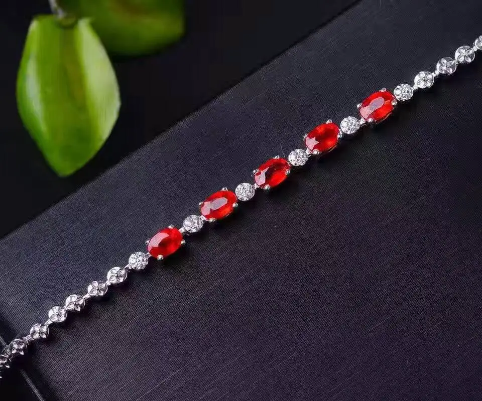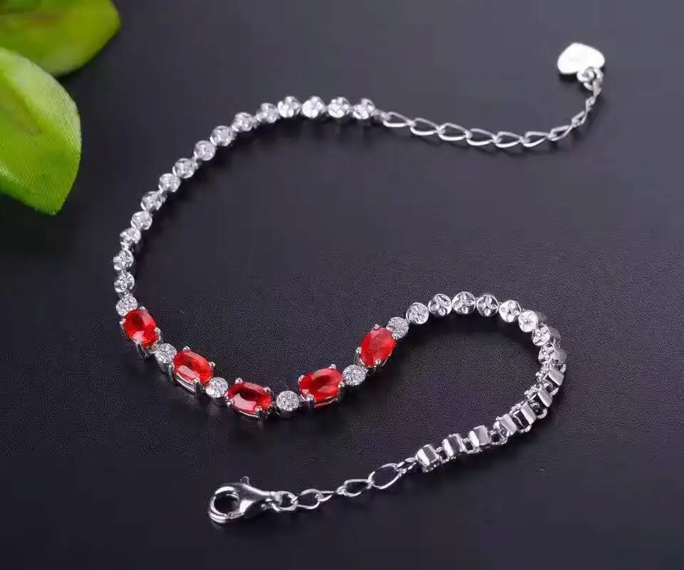 Elegant gemstone silver bracelet 5pcs 3*5mm 2ct natural blood red ruby bracelet solid 925 sterling silver ruby bracelet for girl