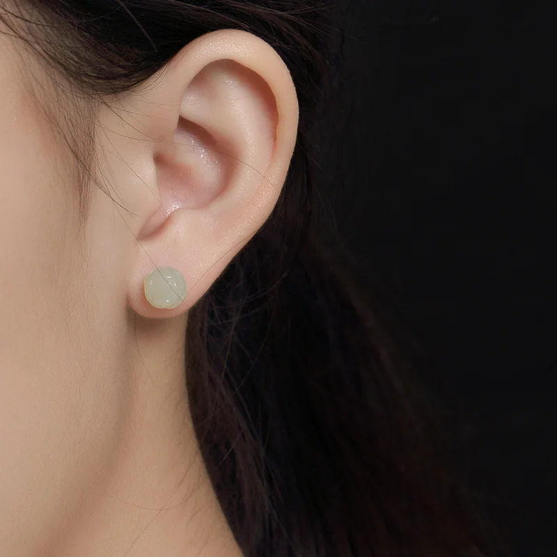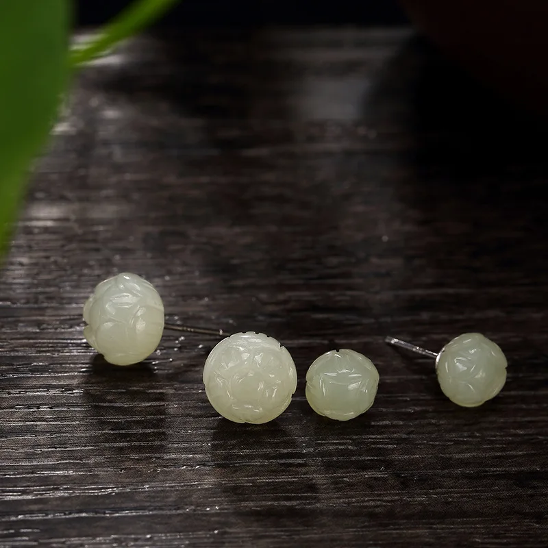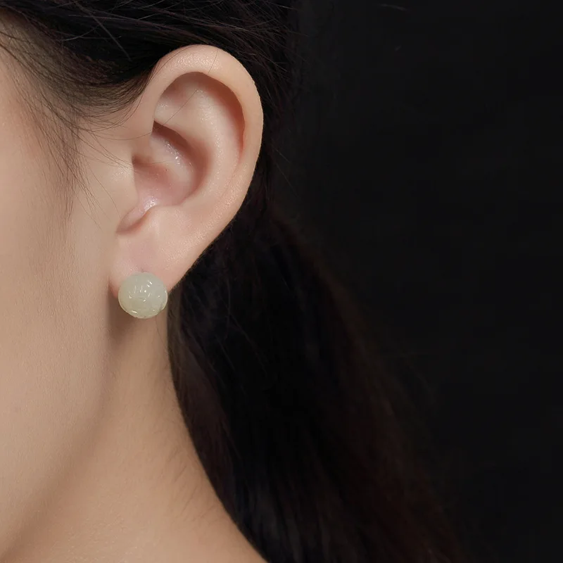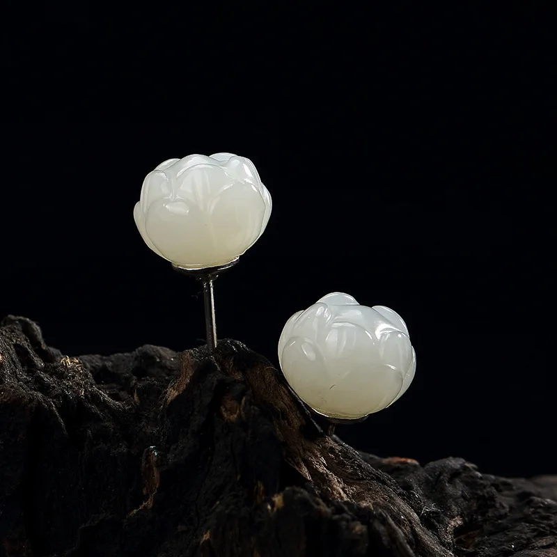 Elegant Real 925 Sterling Silver Jade Lotus Stud Earrings For Women Large Small Natural Stone Allergy Free High Quality Jewelry
