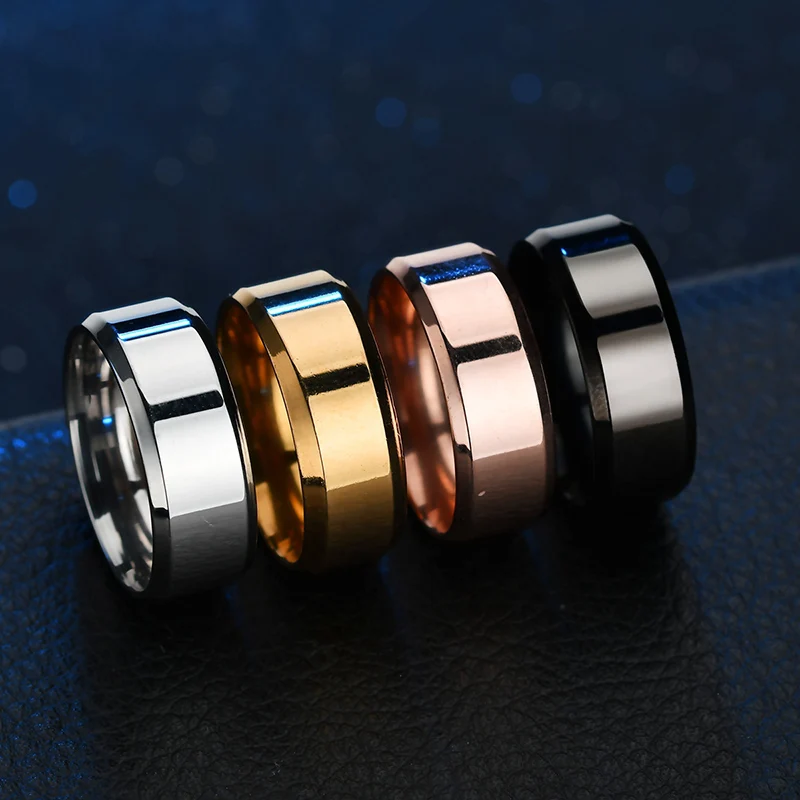 High Quality Titanium Stainless Steel Rings Black For Men Gold Silver Blue Multi Color Smart US Size 5-13